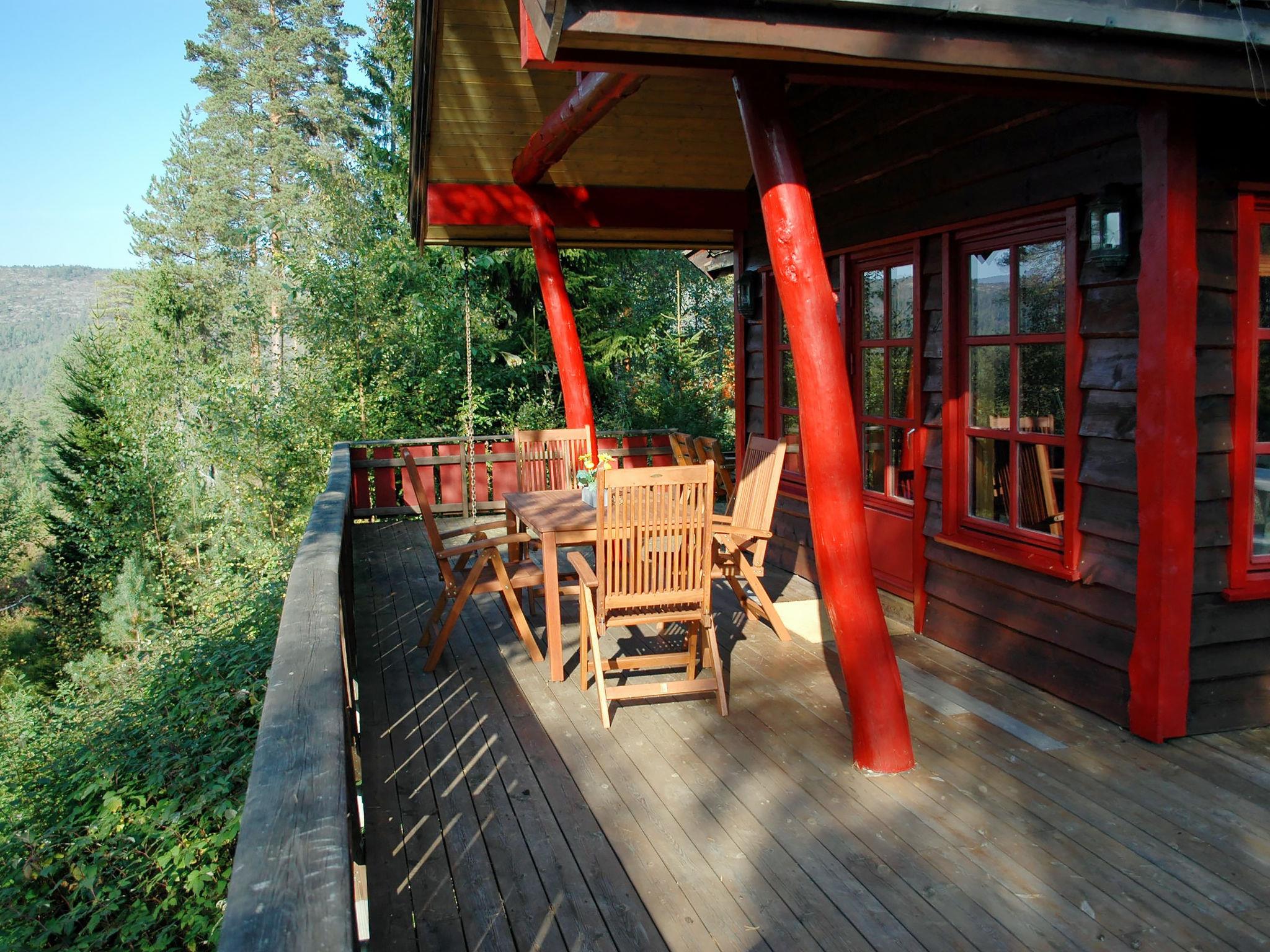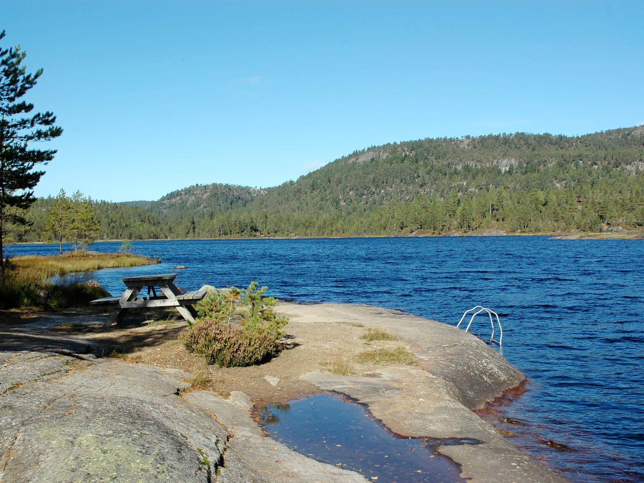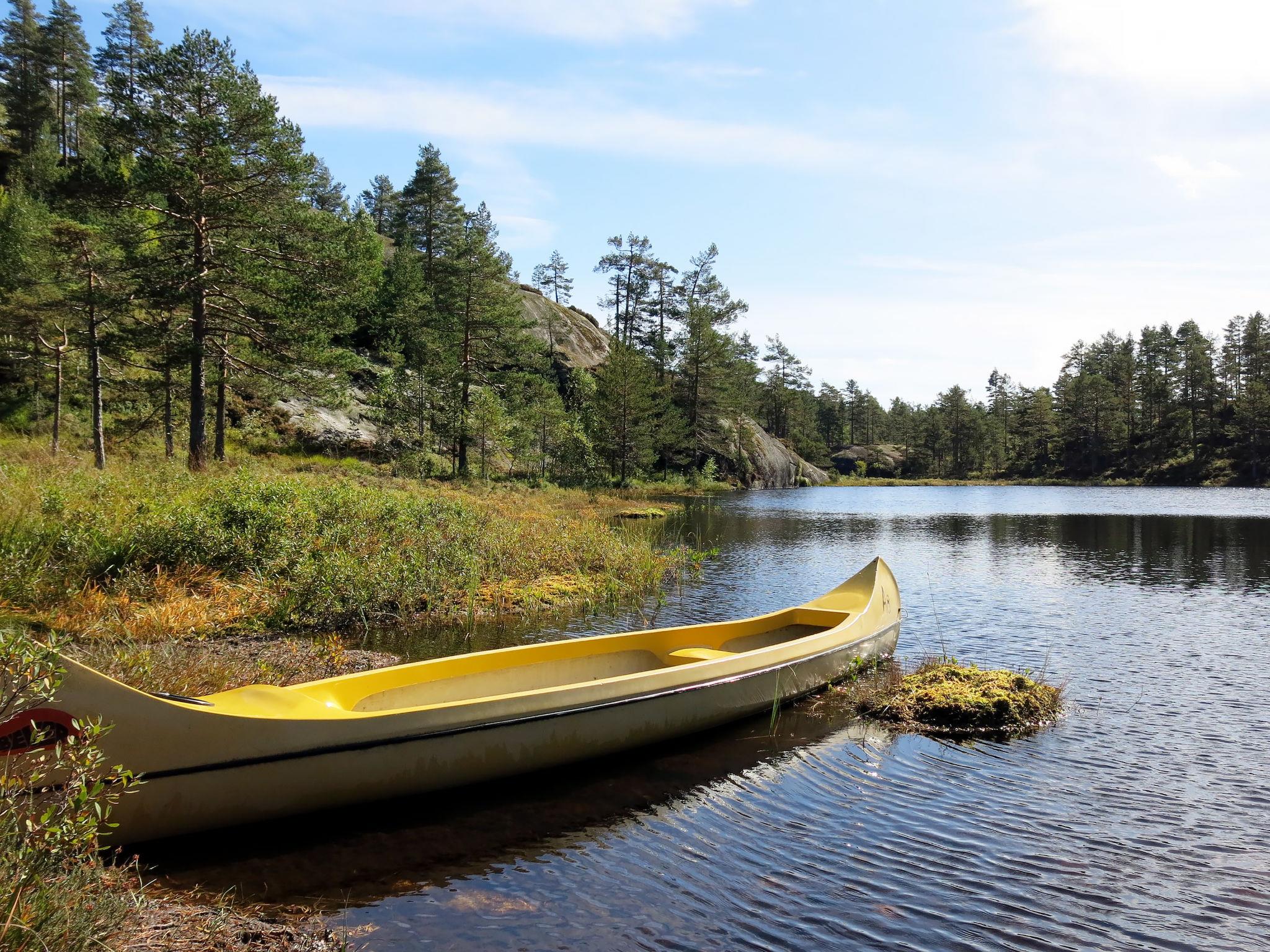 Holiday development "Troll". 5 km from the centre of Felle, 55 km from the centre of Kragerø, 141 km from the centre of Kristiansand, 150 m from the lake. Bathing place. Private: natural state property. Terrace, garden furniture, barbecue. Available: canoe (extra). Parking on the premises. Shop 5 km, supermarket 20 km, café 5 km, bus stop "Eikeland" 4 km, ferry "Langesund" 79 km, sandy beach 1 km, rocky beach 500 m. Fishing possibilities 150 m. Hiking paths: Eikhom 30 km.