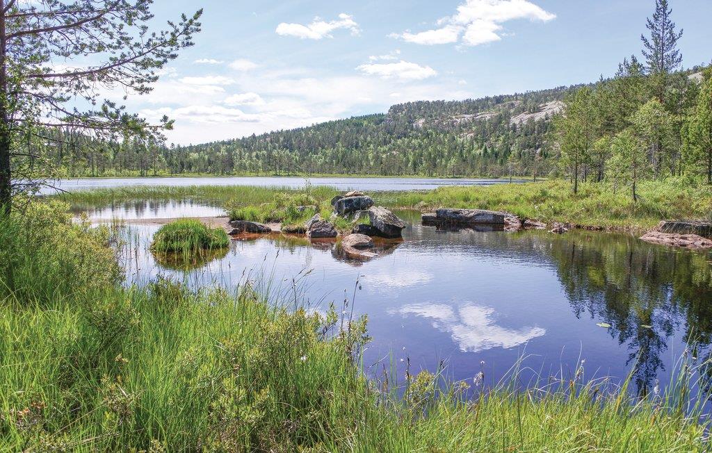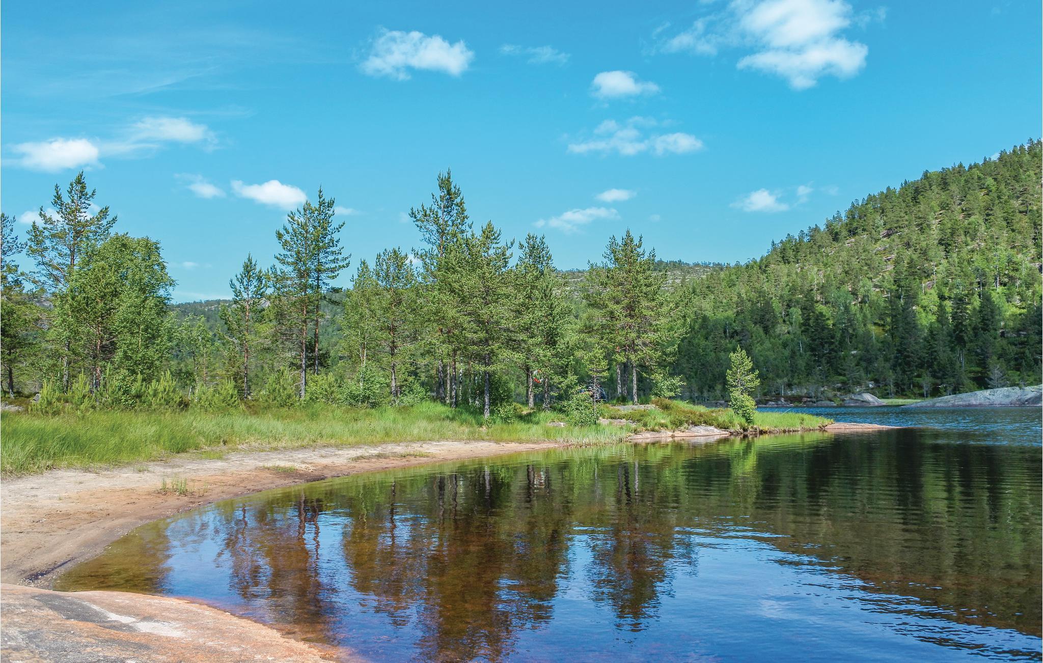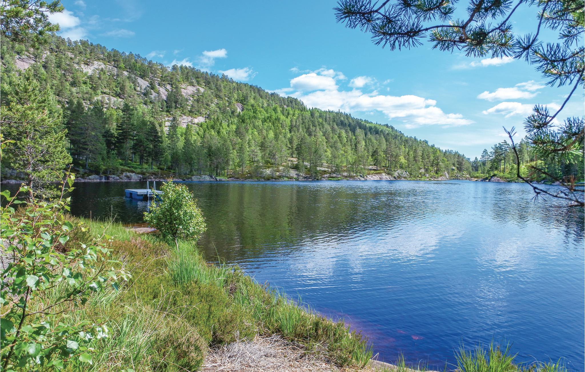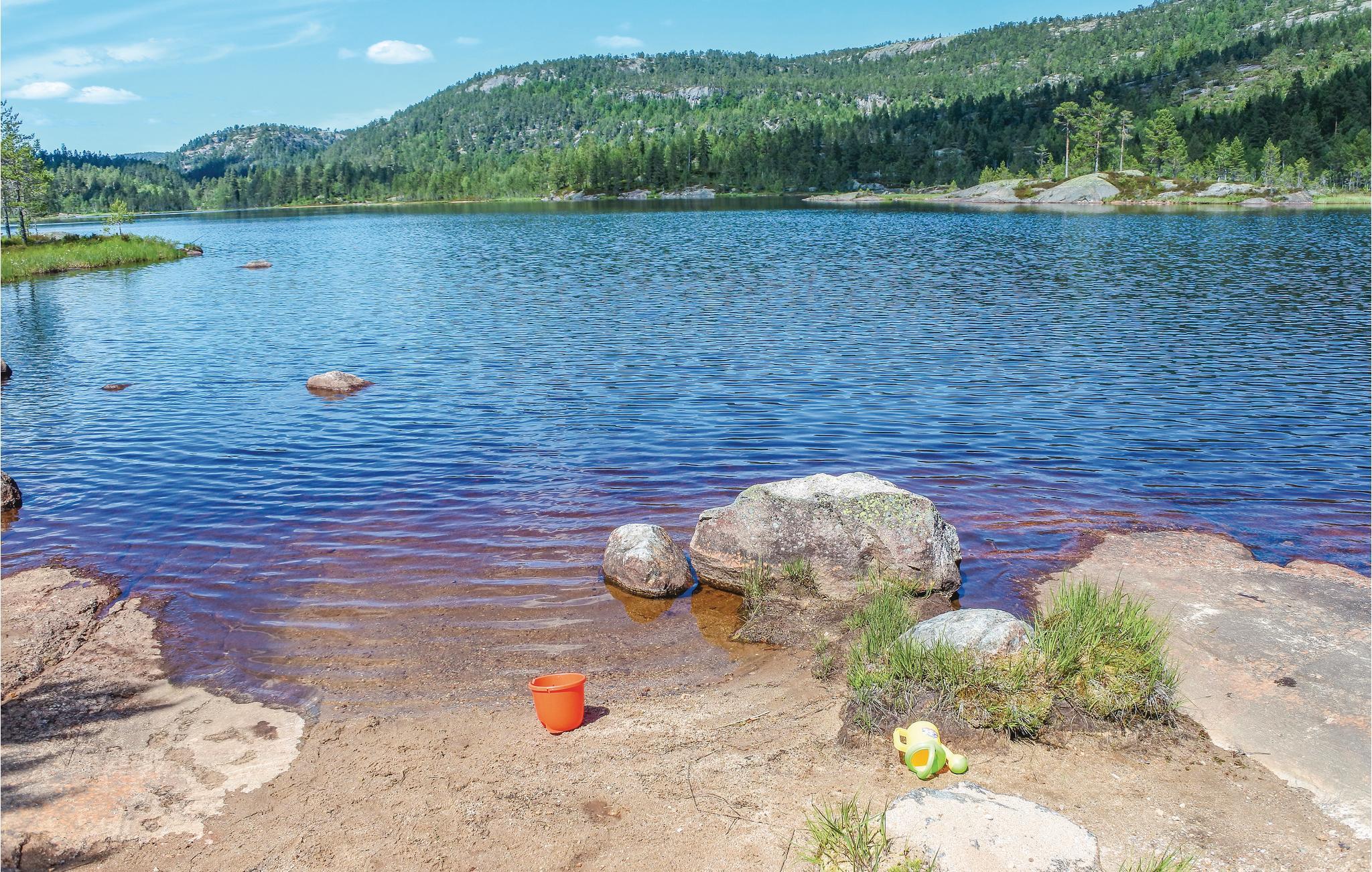Bo i et smukt fjeldterræn i dette traditionelle norske feriehus. Der er badestrand og flere markerede stier i nærheden. Fisk fra land eller fra båd, gå ture og svøm om sommeren. Om vinteren er der flere sporede løjper at vælge mellem. I kan isfiske og løbe på skøjter. Husk at købe fiskekort før I smider snøren ud. Det tager en halv time at køre til Treungen hvor I kan leje både ved Nisser som er Telemarks største indsø, her er også en indendørs legeplads og Z-museum, fra forældre og bedsteforældre var børn, medbiler, telefoner og legetøj. I kan leje cykler og høre mere om cykelture på den gamle Treungbanen i Turistinformationen. Hvert år i starten af august kan I deltage i Treungen festival med musik i fem dage. Der er heller ikke langt til ‘Den lille dyrehage' på Brokelandsheia ved E18. En tur til den smukke Kragerø, Norges nordligste sørlandsby kan anbefales. Bomvej: kun betaling ved første passage.