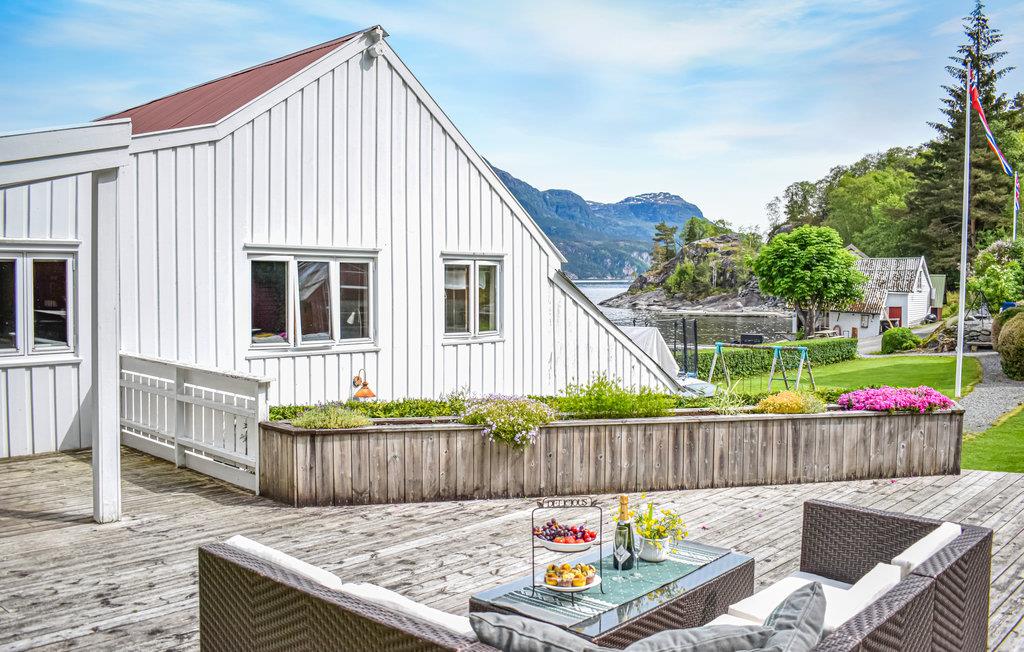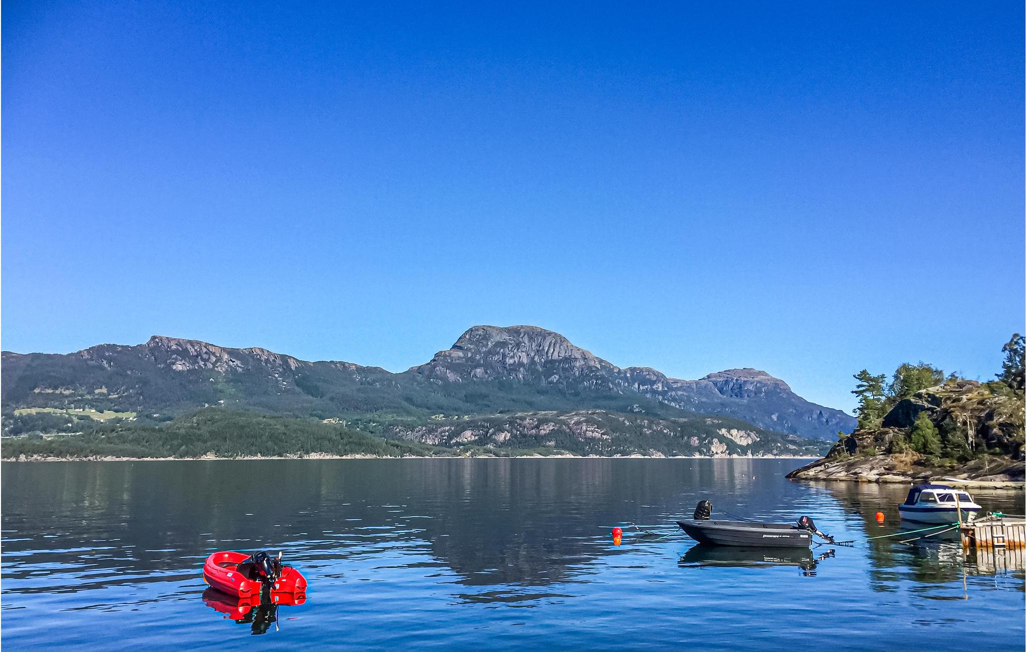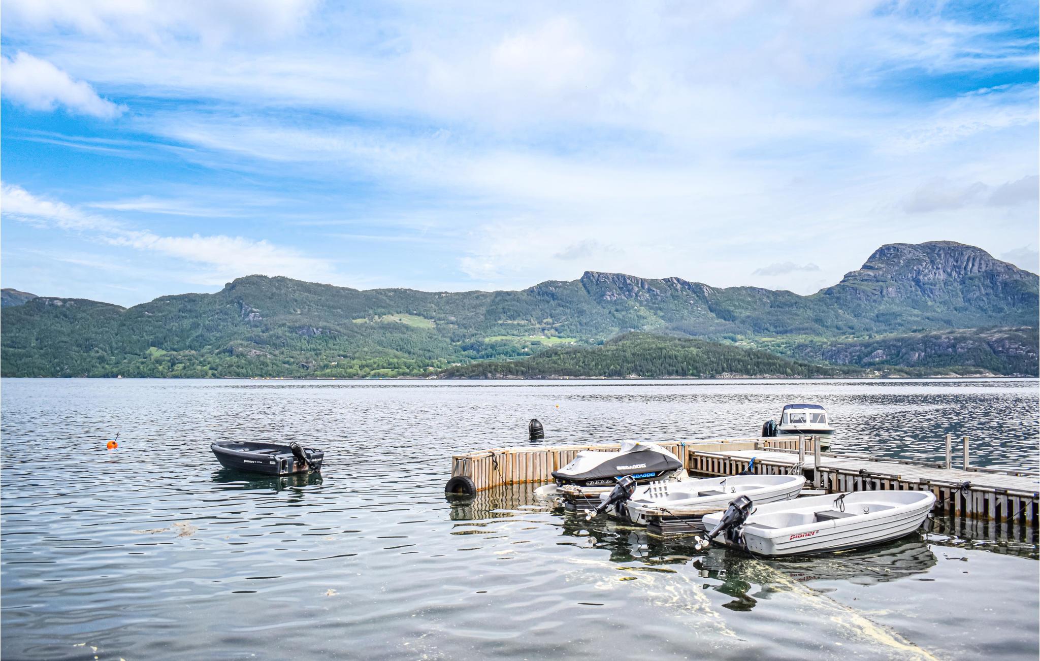 Ferielejlighed med dejlig beliggenhed ved vandkanten. Dette område er en sjælden perle med vandreruter og firekte adgang til Vindafjorden. For de, som ønsker at tage nogle dejlige ture rundt i fjorden med mulighed for fiskeri, kan der lejes en lystbåd i god kvalitet. For fiskeentusiaster er der også en større båd med ekkolod, så I let kan finde de bedste fiskesteder. Ved husets egen bådbro, som deles med N16271 er der en fiskerenseplads, så I let kan klargøre jeres fangst til en lækker middag.