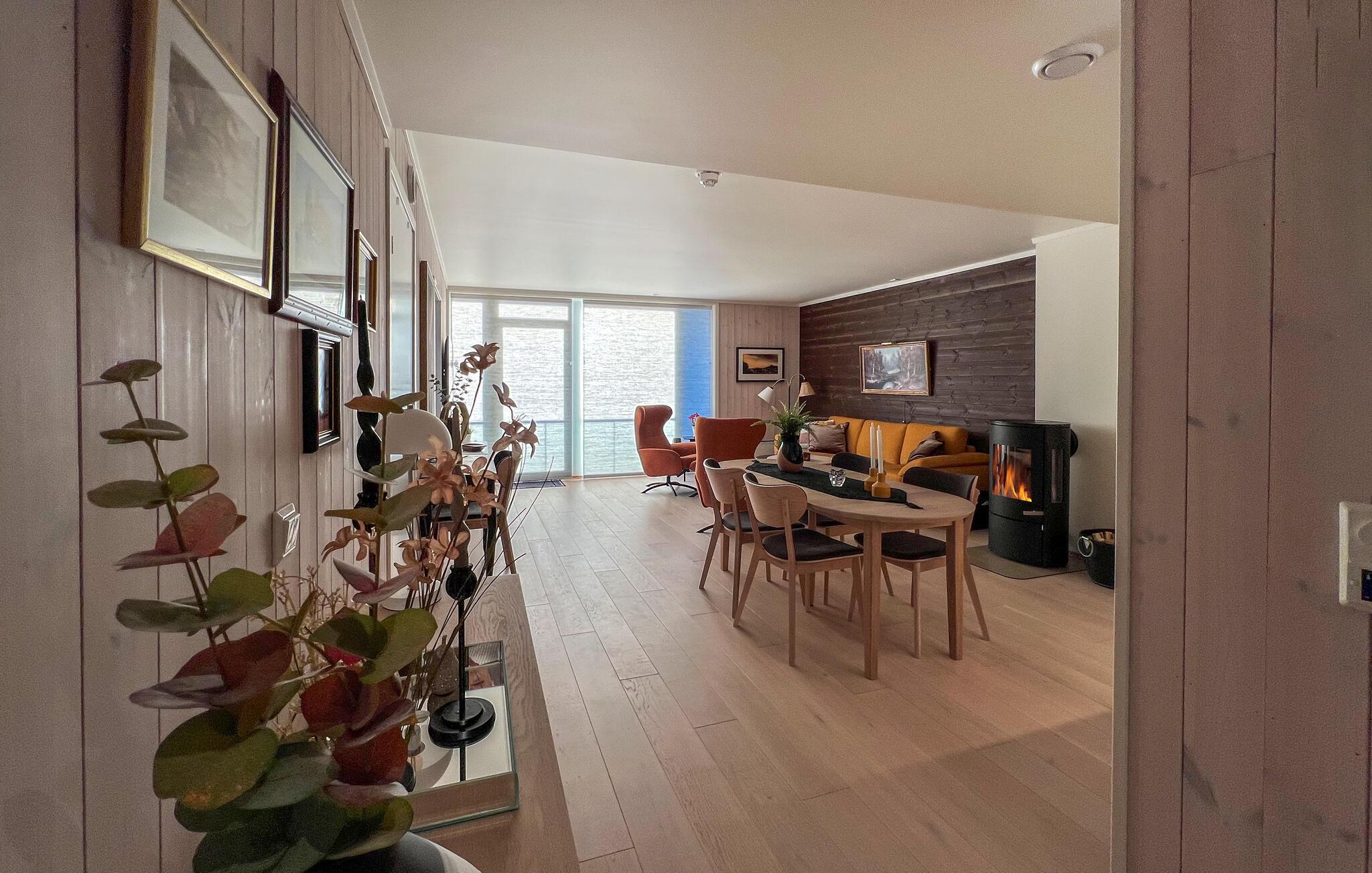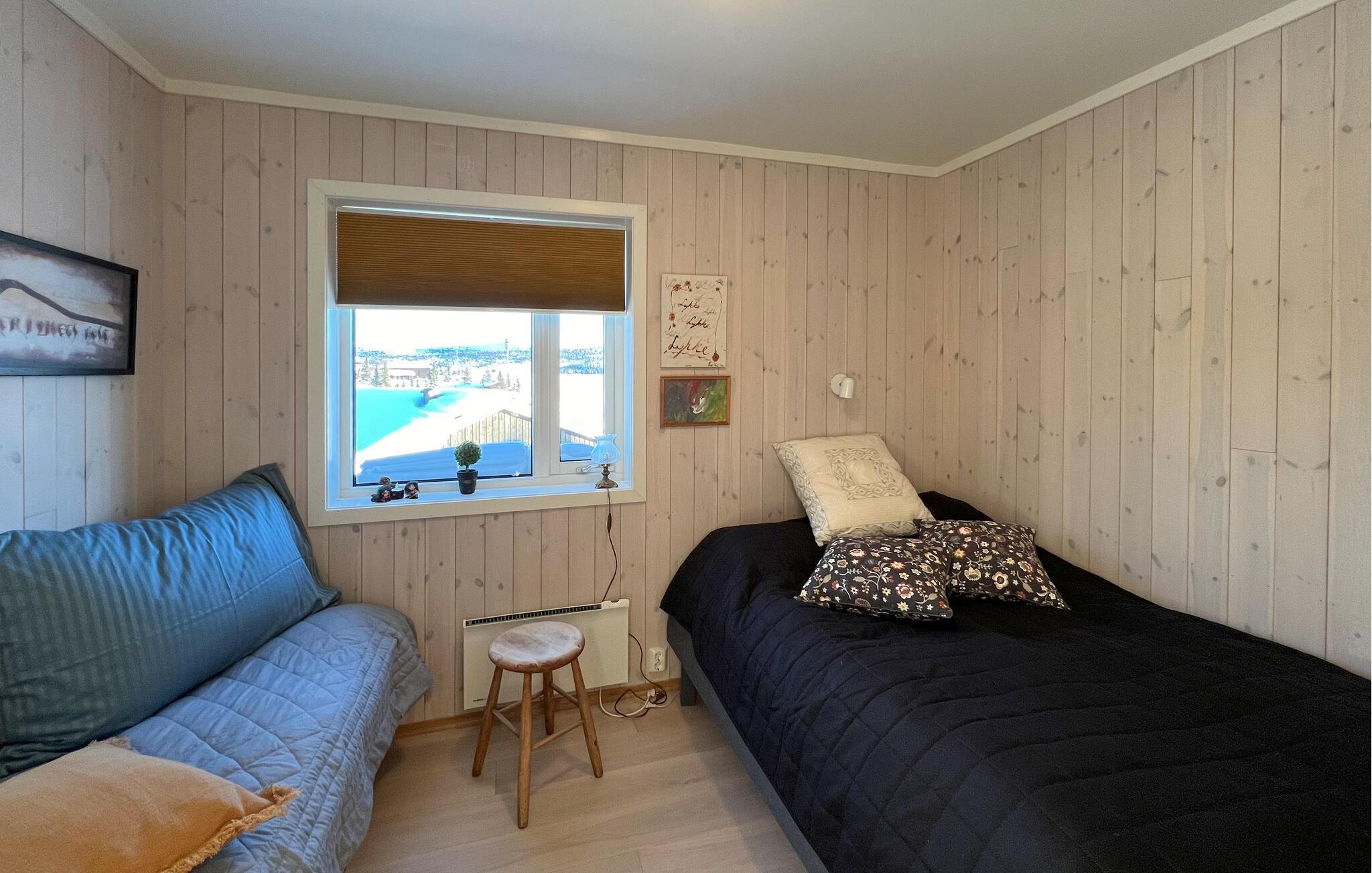 Boligen ligger tæt på den smukke Sjusjøen og tæt på gode vandreruter og fremragende fiske- og bademuligheder, så I får her de helt ideelle rammer for nogle rolige dage krydret med en masse sjov. Boligen fremstår yderst charmerende med sit moderne interiør og gulv-til-loft-vindeuerne, som lyser stuen vidunderligt op udefra. På altanen kan I starte dagen ud med at suge den friske bjergluft helt ned i lungerne. Og skal I gøre det ekstra lækkert for jer selv, kan I leje en sauna ved Sjusjølunga-pladsen ganske tæt på.