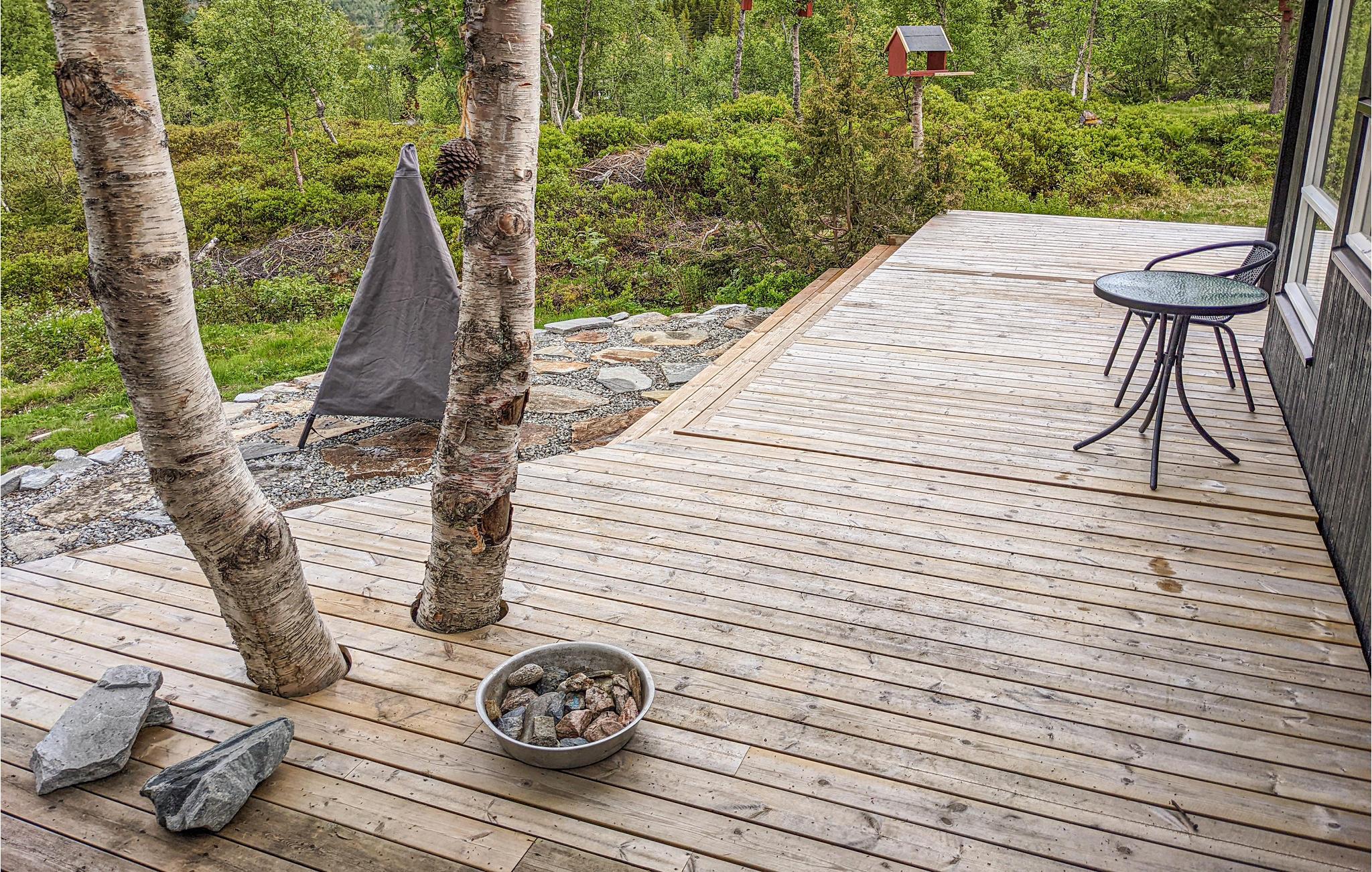 Huset har en stor og dejlig terrasse, hvor du kan nyde din tid udenfor. I haven kan du lege. Garanteret feriesjov for både store og små.