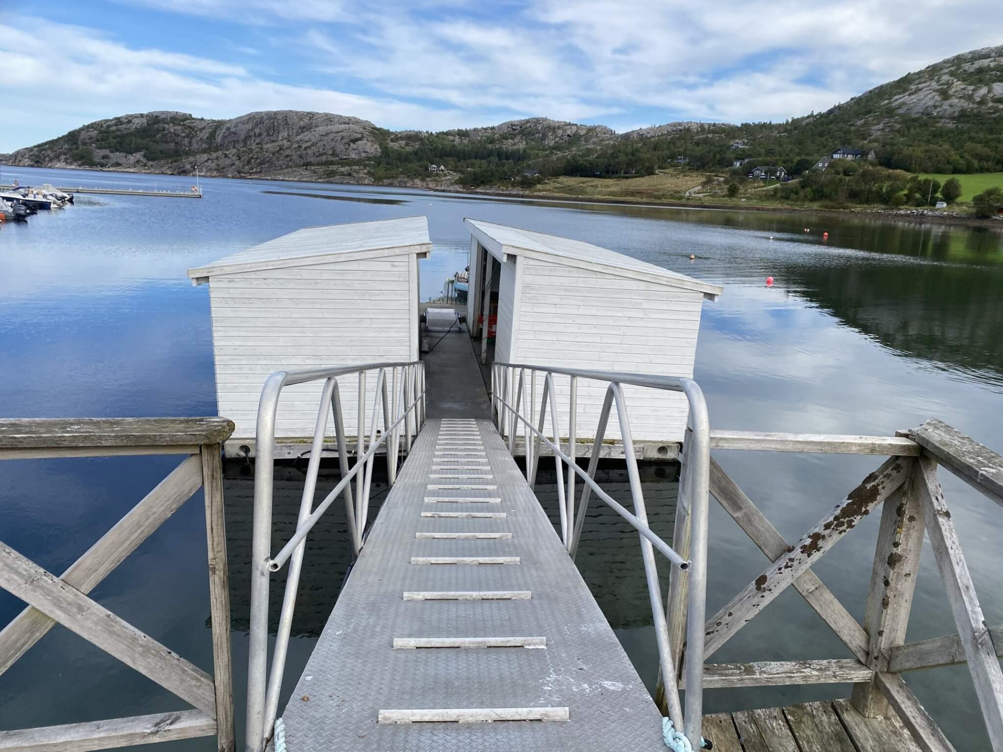 Båten ligger ved flytebrygge på Vik brygge ca. 400 meter fra huset og må forhåndsbestilles.