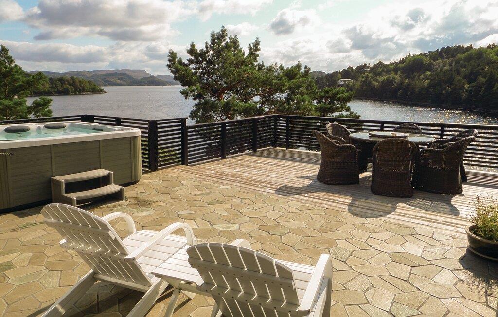 Velkommen til dette fantastiske sommerhus med en smukt anlagt grund og panoramaudsigt ud over Ålfjorden. Nyd afslappede stunder på den store tagterrasse, mens I lader blikket vandre over den storslåede natur, der omgiver jer. Terrassen er også et dejligt sted til lækre grillmiddage, her kan I nyde de lyse sommeraftener, mens I drøfter dagens begivenheder.