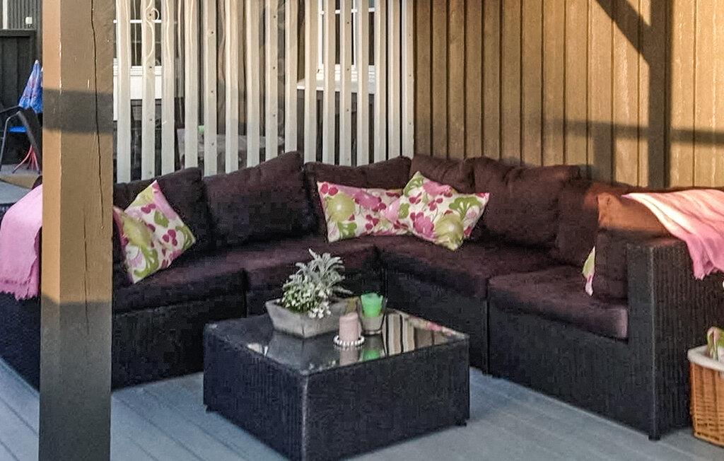 Slap af når som helst på den overdækkede terrasse og nyd den friske luft. Det rummelige siddeområde lægger op til at nyde måltider sammen eller et glas vin om aftenen. Selv på køligere dage er dette sted et hyggeligt tilflugtssted, hvor I kan kombinere nærhed til naturen med komforten i en stue.