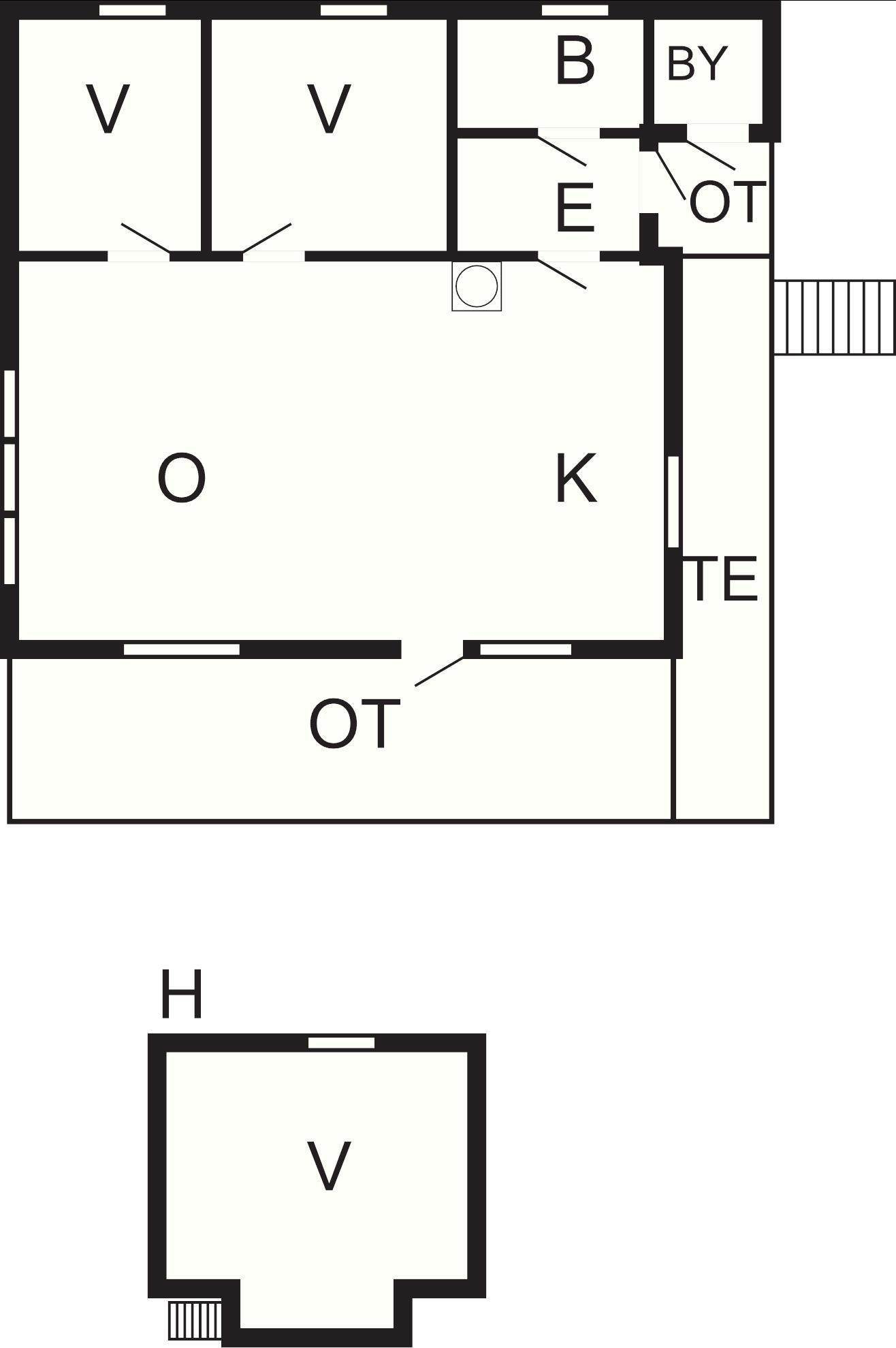 Stor og romslig stue med kjøkkenavdeling. 20 kvm delvis overbygd terrasse mot fjorden. TV: SmartTV+/Apple TV, norske, nordiske, tyske og europeiske TV-kanaler. Internett 100 Mbits. Køyeseng med 120 cm bredde nede og 75 cm bredde oppe. Hems for den spreke med to lave 90 cm brede senger, gode madrasser. Bratt stige opp til hemsen. Langgrunn sandstrand 150 m.