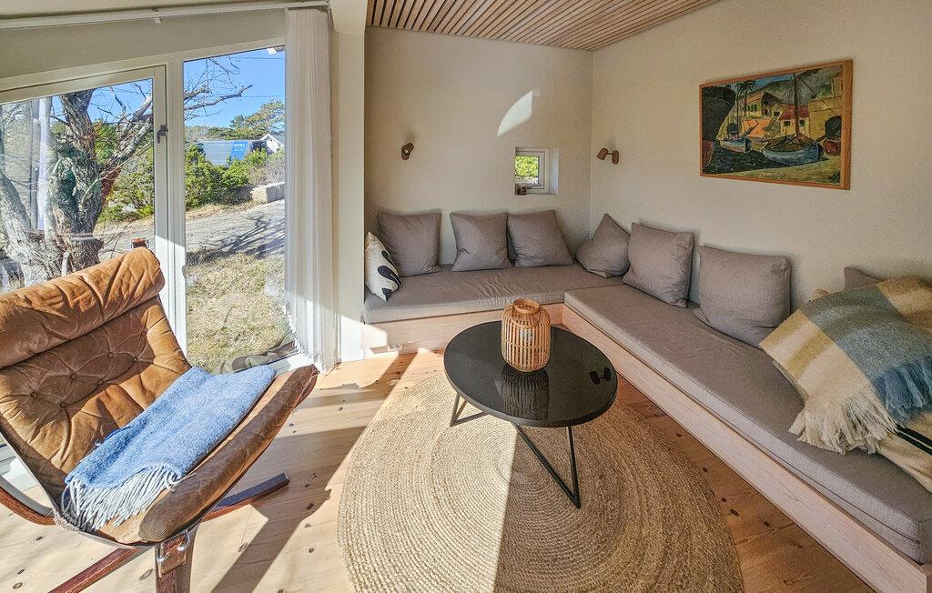 Dette hyggelige feriehus ligger nær kysten og byder jer velkommen med lyse interiører og stilfulde møbler, der vil få jer til at føle jer hjemme fra første øjeblik. Her finder I masser af plads til at nyde hyggelige madlavningsaftener, fælles måltider, både indendørs og udendørs, og hyggelige filmaftener, selv med en større gruppe.