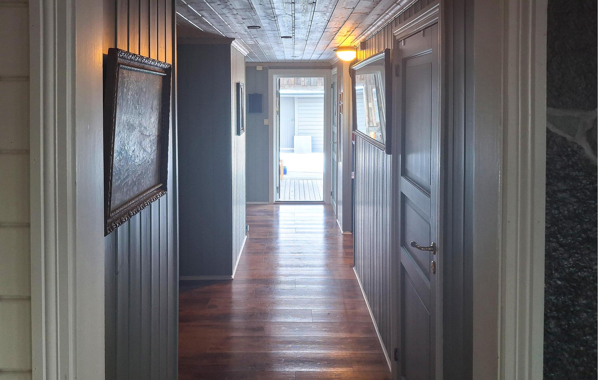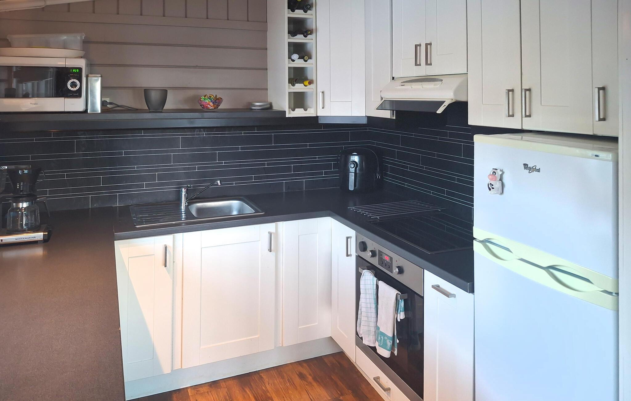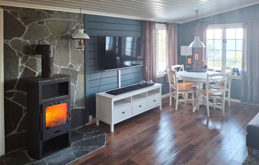 Det varme træ i vægge og lofter skaber en indbydende atmosfære, mens hjørnesofaen og de komfortable lænestole inviterer jer til at slappe af. Sæt jer foran brændeovnen og nyd den knitrende ild på køligere dage. Den åbne spiseplads ligger lige ved vinduet, så I kan nyde udsigten over Trondheimsfjorden, selv mens I spiser morgenmad. Brug fjernsynet til en rolig aften eller tilbring hyggelige timer med stimulerende samtaler. Forbered jeres måltider i det smukke køkken. Lav mad sammen og lad blikket vandre gennem vinduet over vandet og det omkringliggende landskab.