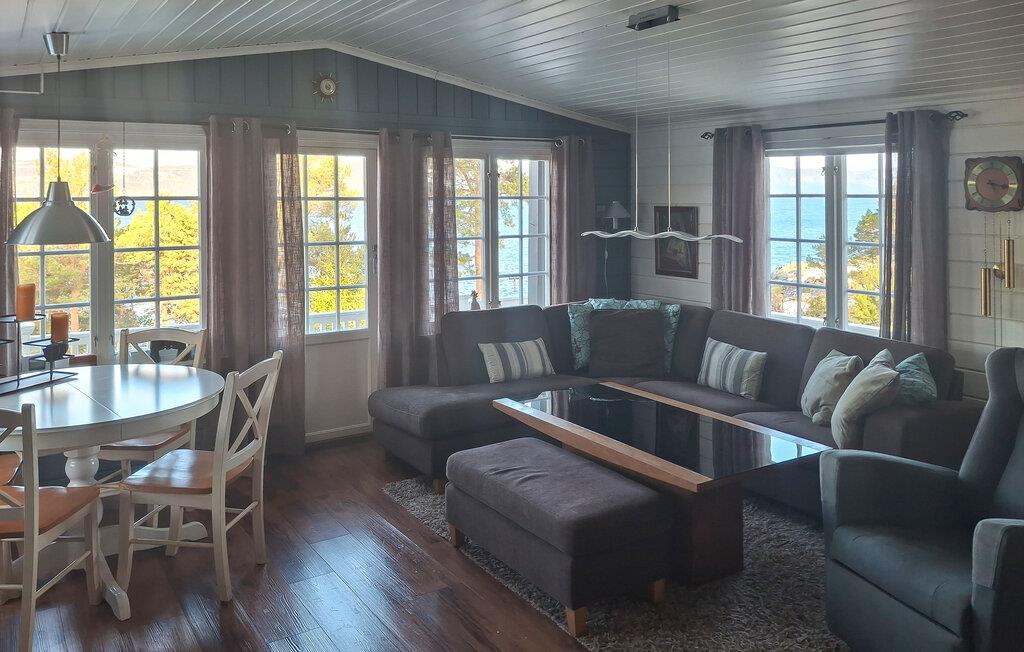 Tilbring afslappende dage med en storslået udsigt over fjorden i denne hyggelige hytte ved vandet.