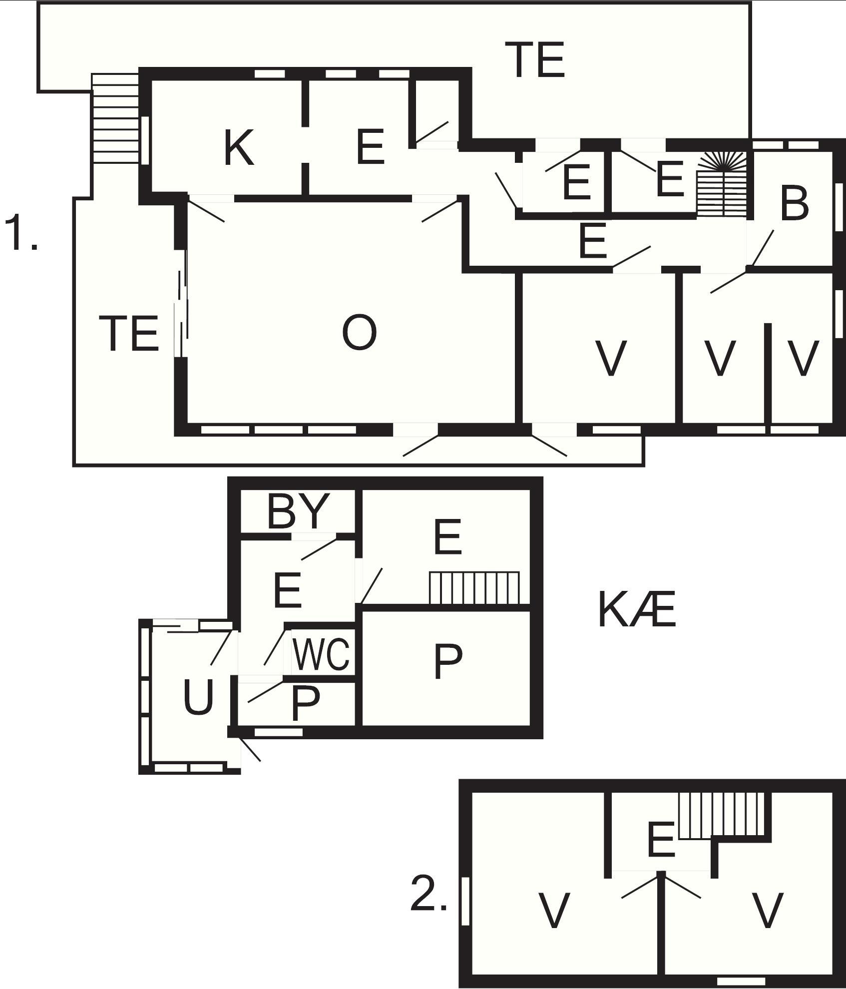 4 Soveværelser: (1DS+2O)+(2S+2O)+(1DS+1O)+(1DS+1O), barneseng