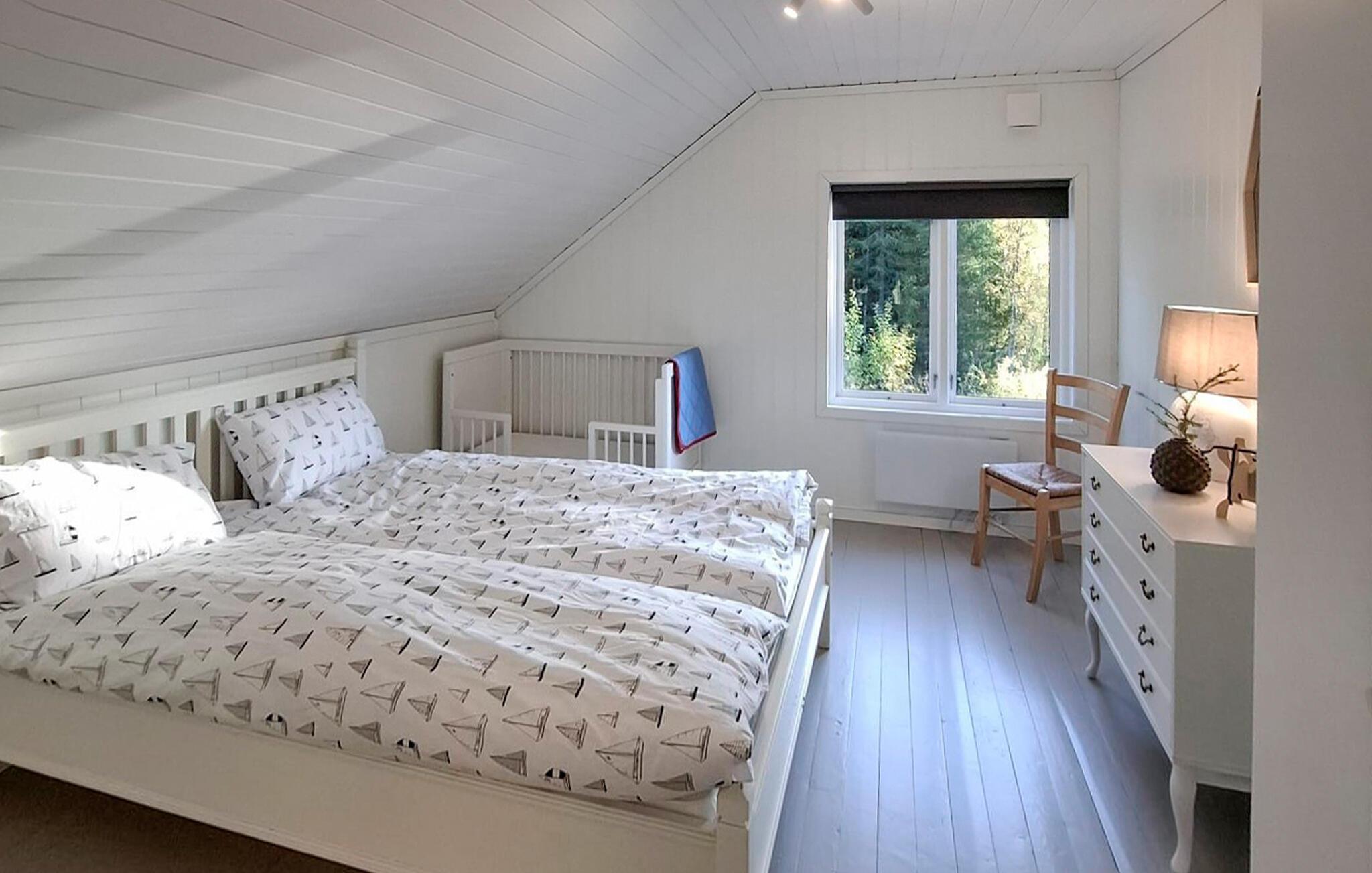 Dette hyggelige feriehus byder jer velkommen med masser af plads, komfortable og smagfulde møbler og en magisk udsigt over Fyresvatnet. Glæd jer til hyggelige måltider og hyggelige spilleaftener med familien. Lyt til knitren fra pejsen, mens I slapper af i sofaen med en bog eller fordyb jer i panoramaudsigten over det idylliske landskab med en varm kop te.