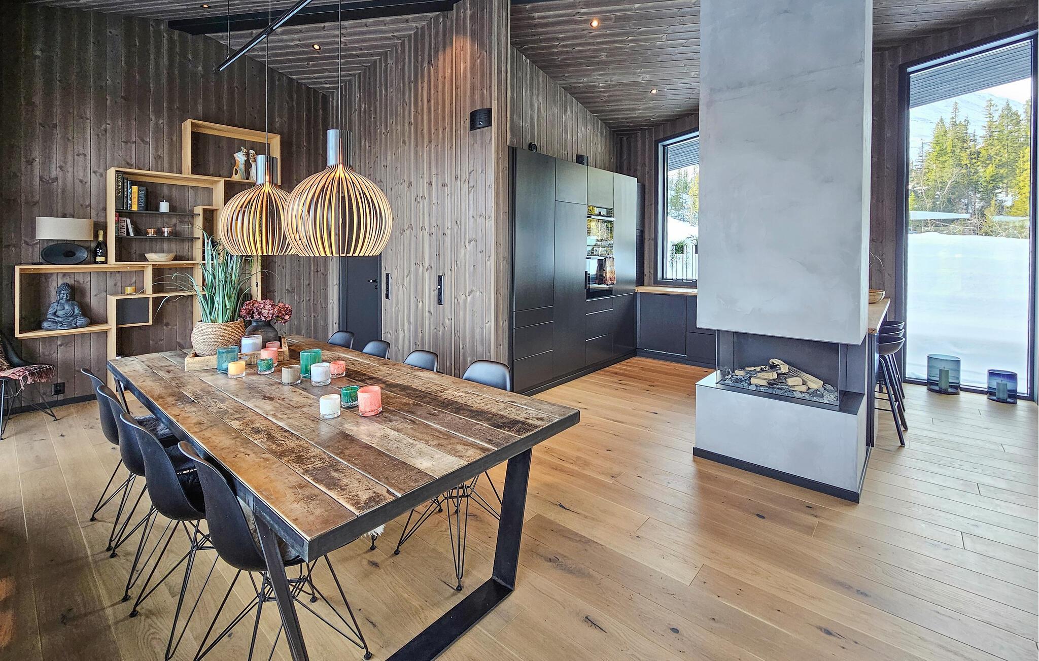 Midt i et eventyrligt landskab venter dette rummelige og komfortabelt indrettede feriehus og inviterer til en uforglemmelig pause fra hverdagen. Tænd op i pejsen, og lad jer inspirere af den idylliske udsigt, mens I tilbereder mad i det moderne køkken. Nyd afslappende øjeblikke i saunaen, og se frem til stemningsfulde timer i de hyggelige opholdsrum, hvor I kan nyde gode samtaler over et glas vin eller afholde hyggelige filmaftener.