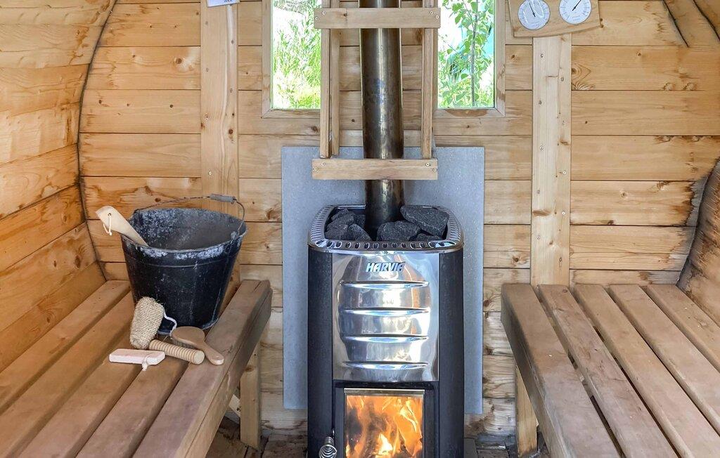 Se frem til en skøn ferie i de smukkeste omgivelser i dette charmerende træhus med tøndesauna.