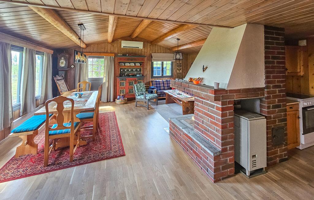 Undslip den hektiske hverdag i dette hyggelige hus midt i naturen. Trævæggende og bjælkerne i lofterne giver huset sin charme, og helt automatisk kommer man ned i gear og feriestemning. Den smukke pejs giver hyggelig varme på kølige aftener, så I kan samle jer i stuen til spilleaftener og hyggesnak i sofahjørnet.