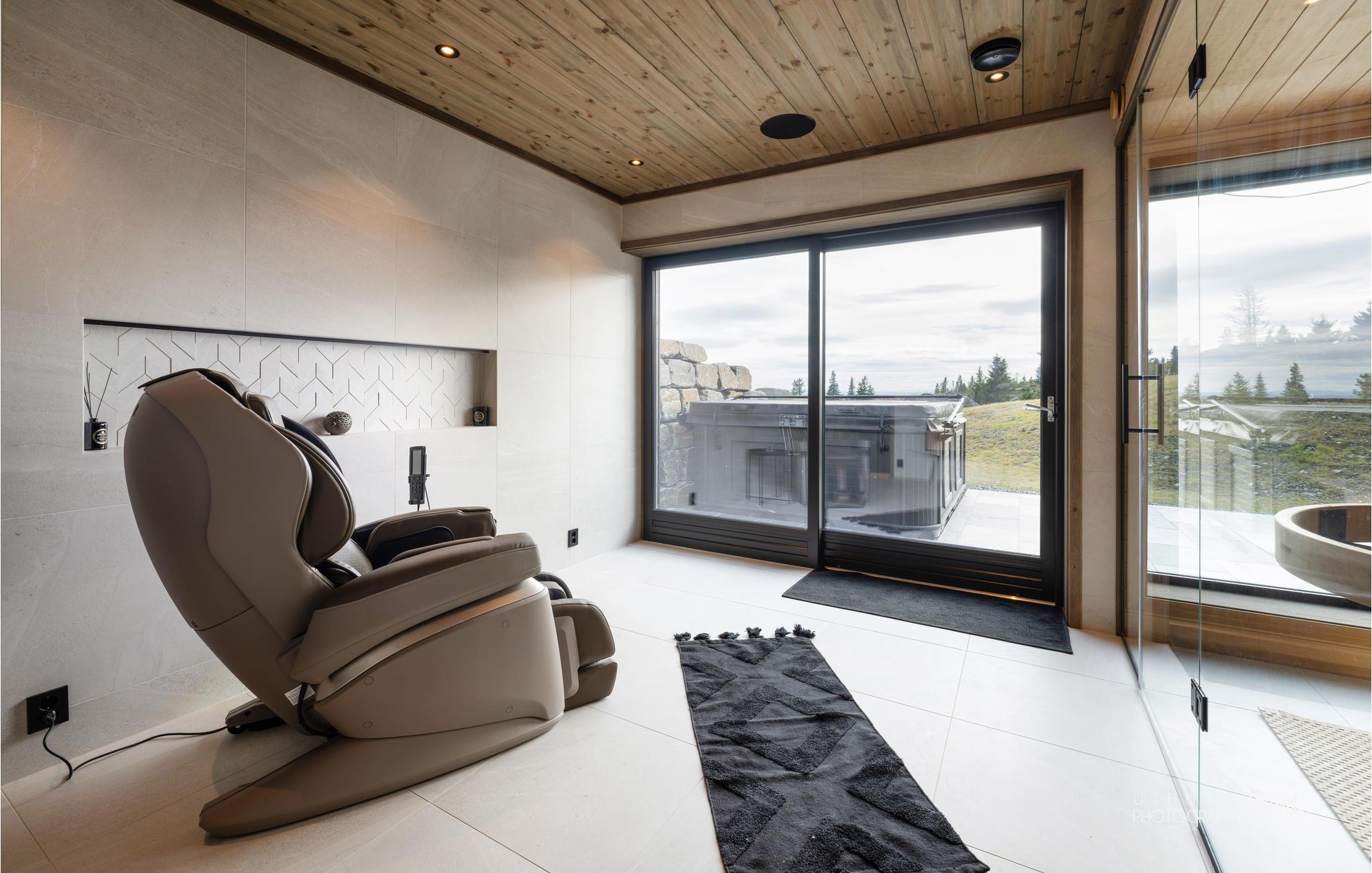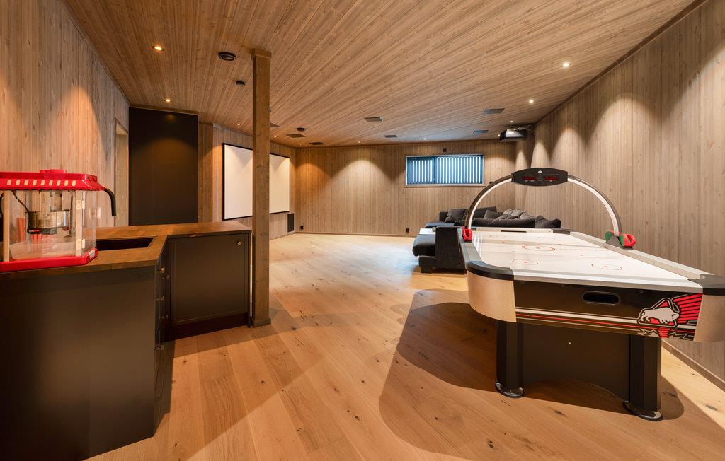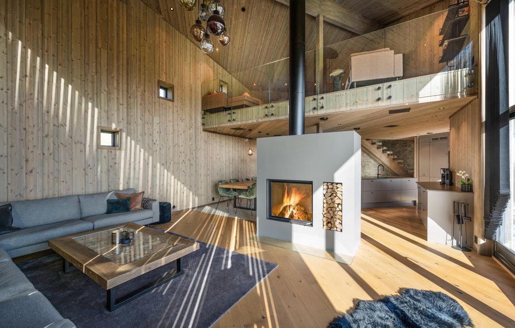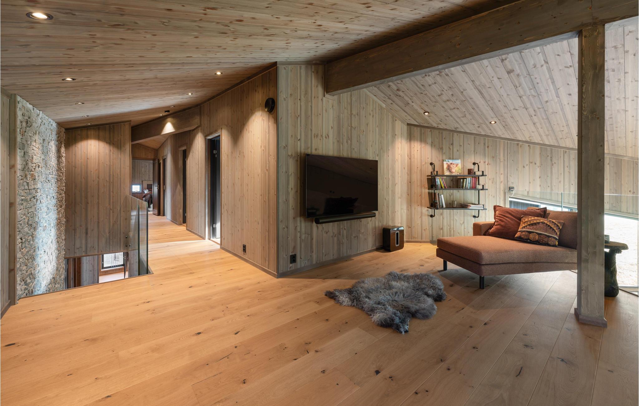 Glæd jer til en hyggelig tid med hele familien i værelserne i det moderne og komfortable feriehus. Med sine elegante møbler er træhuset det ideelle sted til en smuk ferie på alle tider af året. Vinduer fra gulv til loft viser bjergpanoramaet fra sin bedste side. Slap af i saunaen med udsigt til naturen efter en aktiv dag, se en film sammen i hjemmebiografen, og sæt jer derefter til rette i den indbydende sofa og slap af til den hyggelige knitren af flammerne i pejsen.