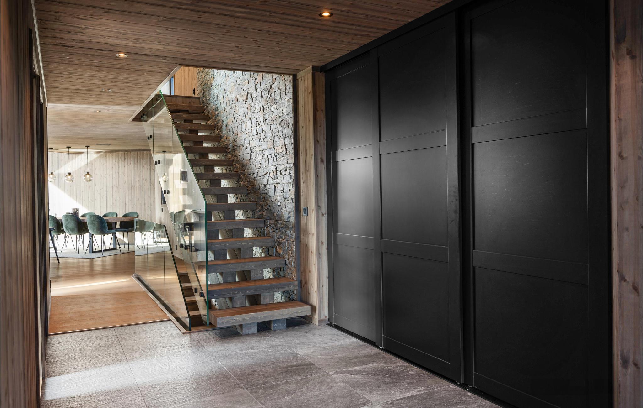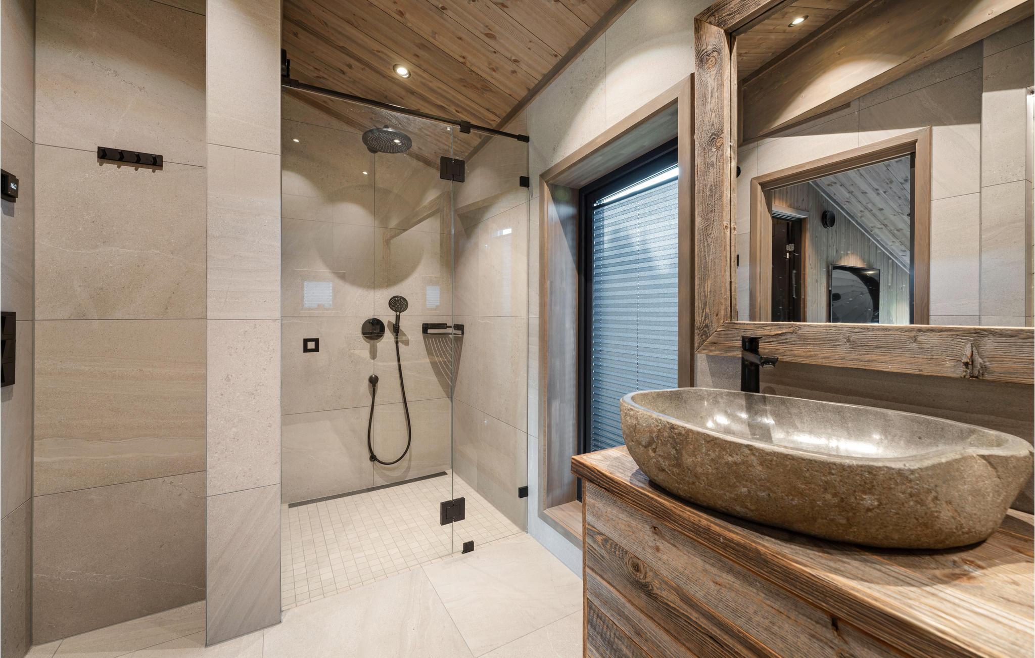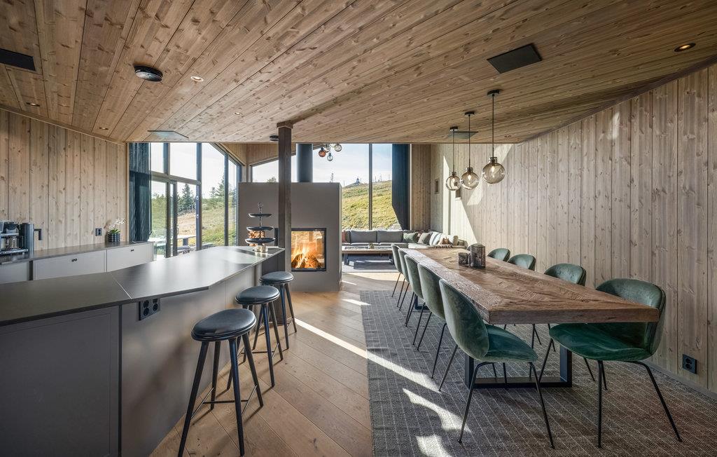 Glæd jer til en hyggelig tid med hele familien i værelserne i det moderne og komfortable feriehus. Med sine elegante møbler er træhuset det ideelle sted til en smuk ferie på alle tider af året. Vinduer fra gulv til loft viser bjergpanoramaet fra sin bedste side. Slap af i saunaen med udsigt til naturen efter en aktiv dag, se en film sammen i hjemmebiografen, og sæt jer derefter til rette i den indbydende sofa og slap af til den hyggelige knitren af flammerne i pejsen.