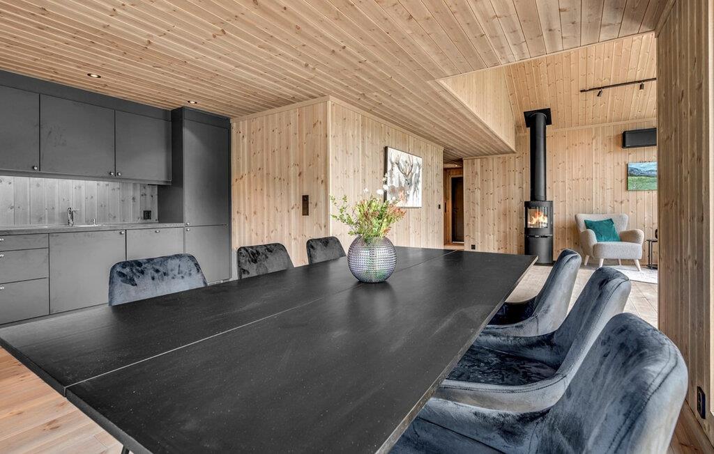 Oplev den charmerende atmosfære i dette kærligt designede hjem, som er noget særligt med sit lyse interiør og moderne skandinaviske design. Nyd afslappende aftener foran den knitrende pejs eller bliv fortryllet af det sneklædte vinterlandskab gennem de store panoramavinduer. Tilbered lækre måltider i det stilfulde, fuldt udstyrede køkken og nyd dem ved det store spisebord.