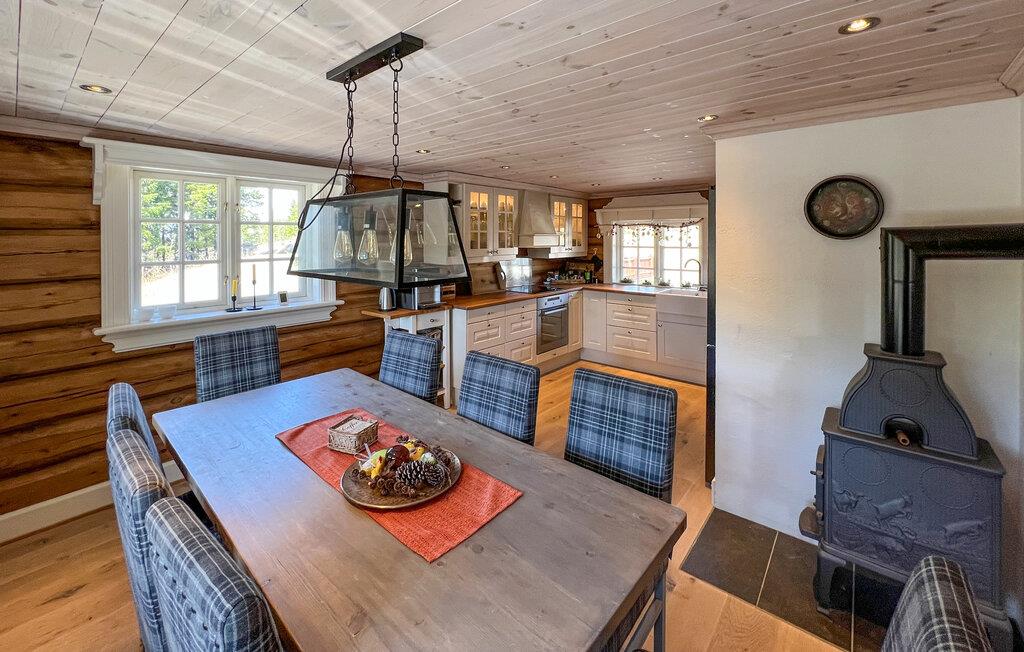 Huset prydes af en vidunderlig beliggenhed på bjergsiden, og udsigten herfra over fjeldene er allelunde storslåede. Indvendigt emmer det af hygge med et art neorustikt look i de varme træpaneler og de bløde farveskalaer, der gør det nemt at slappe af med det samme, I ankommer. Efter en dag på farten kan I slå jer ned i en sofa eller lænestol eller tilberede lidt lækre retter i køkkenet, inden I runder aftenen af med et slag kort til lyden af knitrende ild fra pejsen.