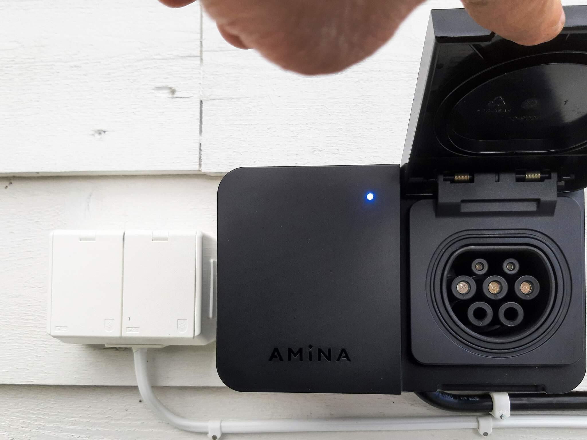 Betalingsterminal/kortleser for betaling av båtleie m.m. Billader her er Amina type 2.
