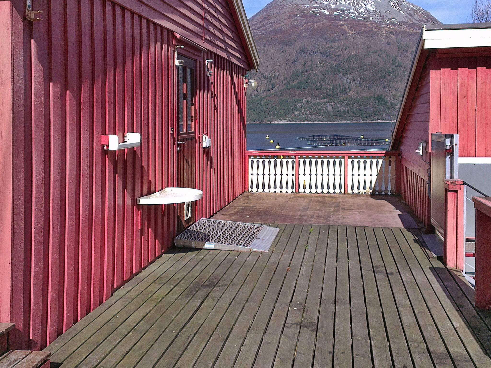 Her er det flere fjorder som møtes med mange gode fiskeplasser. Fra den 36 kvm store terrassen kan du se utover fjordene, øyene og de flotte fjellene. Dette er stedet for de som søker stillhet og ro i sjelen, da feriehuset ligger på en nedlagt gård med 100 m til nærmeste nabo.