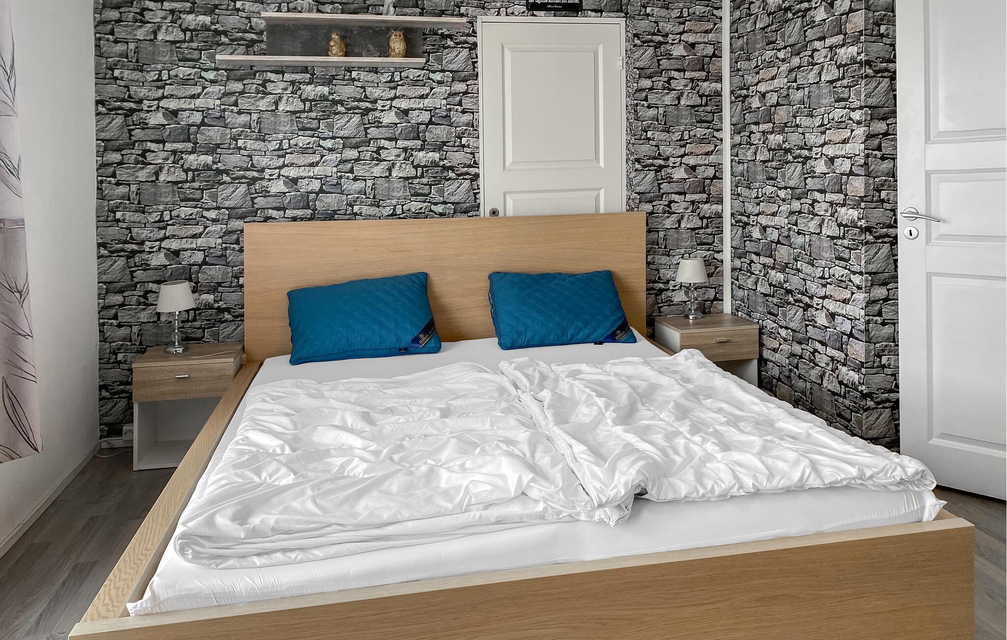 Velkommen i denne rummelige ferielejlighed, hvor I kan nyde harmoniske dage sammen med jeres kære og glæder jer over beliggenheden tæt ved havet. Tilbered jeres måltider i det moderne køkken, eller smid den friskfangede fisk på grillen. Efter en lang dag i den friske luft kan I slappe af i sofagruppen, se en film eller hygge jer med en god spilleaften.