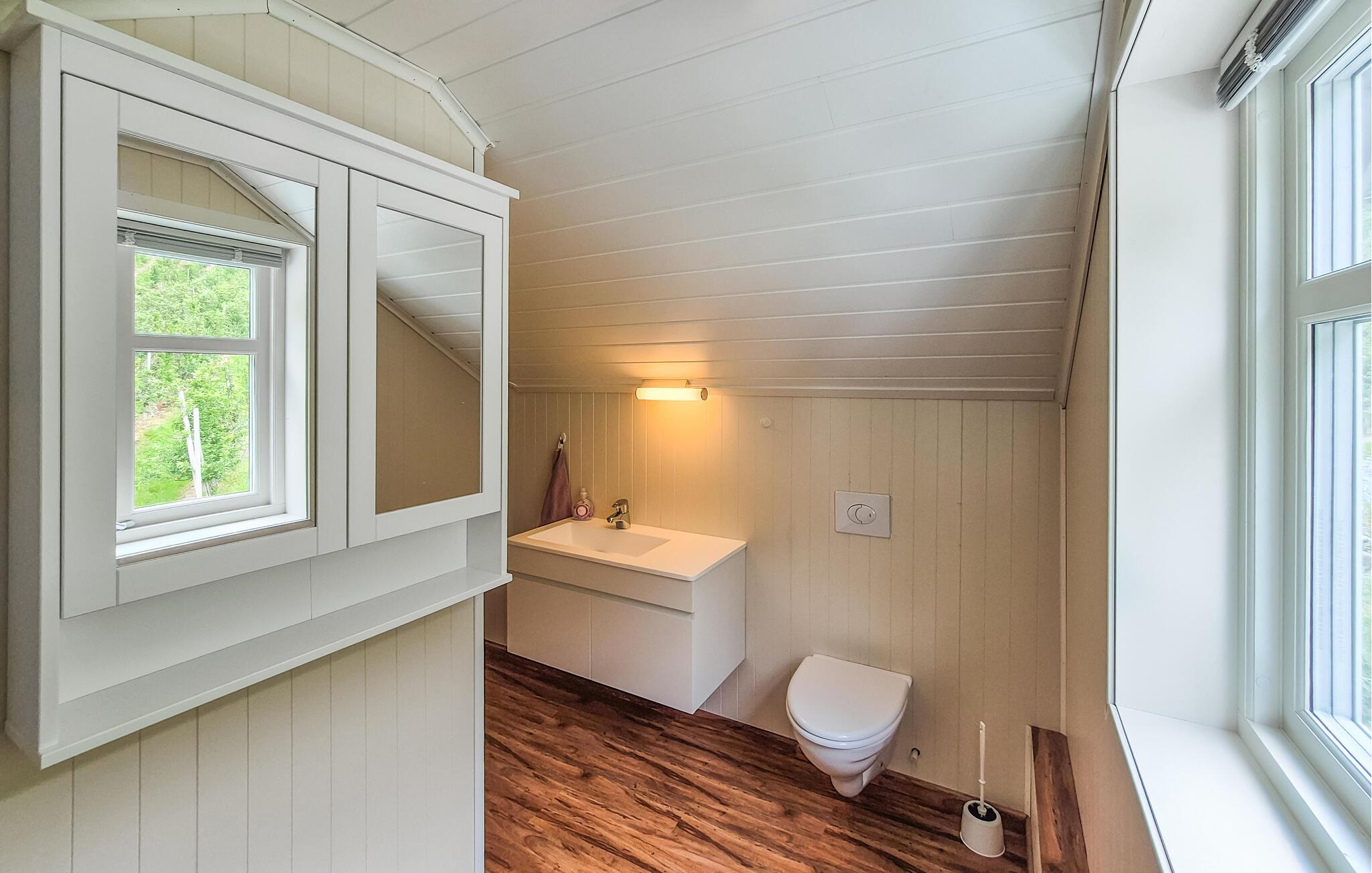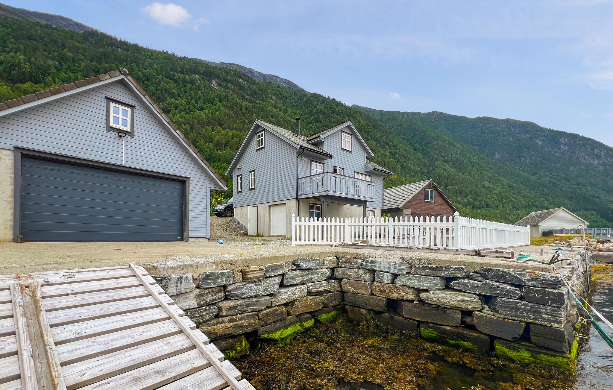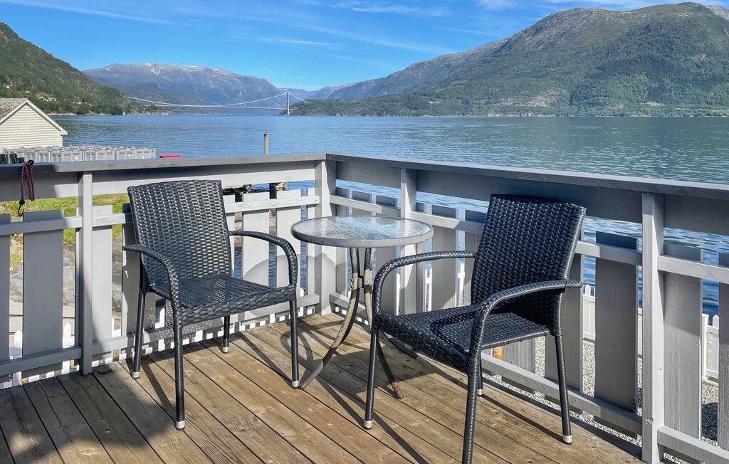 I Djønno, lige ved bredden af ??Hardangerfjorden, kan I se den betagende udsigt over fjorden både fra huset og fra de store udendørsarealer. Slap af på den hyggelige terrasse eller på jeres egen badebro og lad tankerne vandre, mens bølgerne blidt plasker på kysten. I kan også bade her. Benyt muligheden for at køle ned i fjorden hver dag. Eller se, om I fanger noget direkte fra anløbsbroen. Her er mange muligheder for at fange fisk. I kan også tage på lange vandreture i det stille fjeldlandskab eller leje en kajak og udforske fjorden fra vandet.