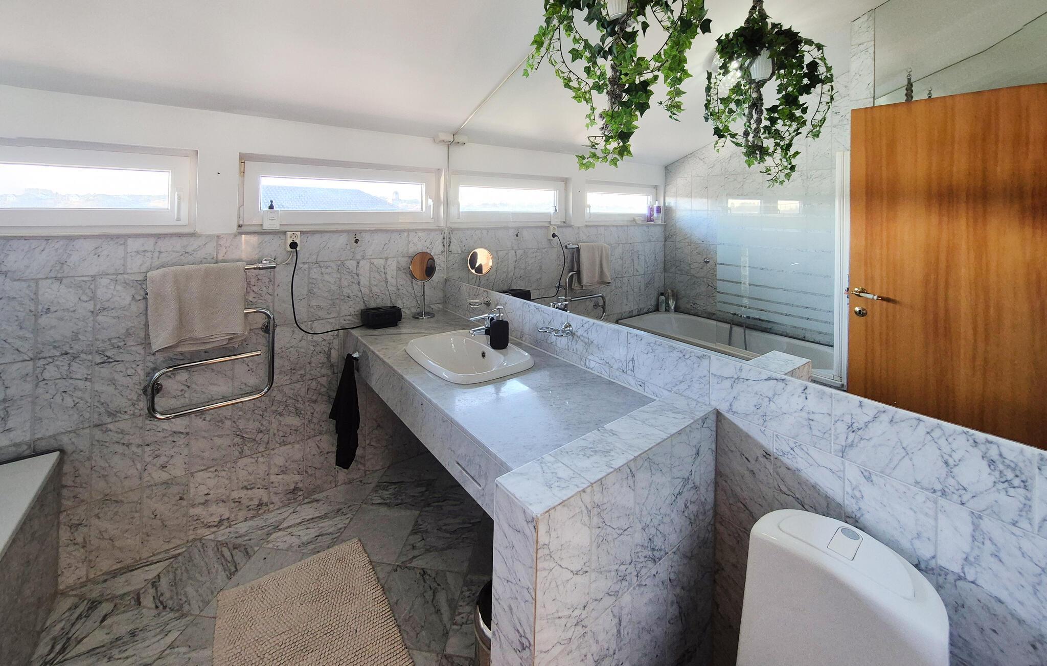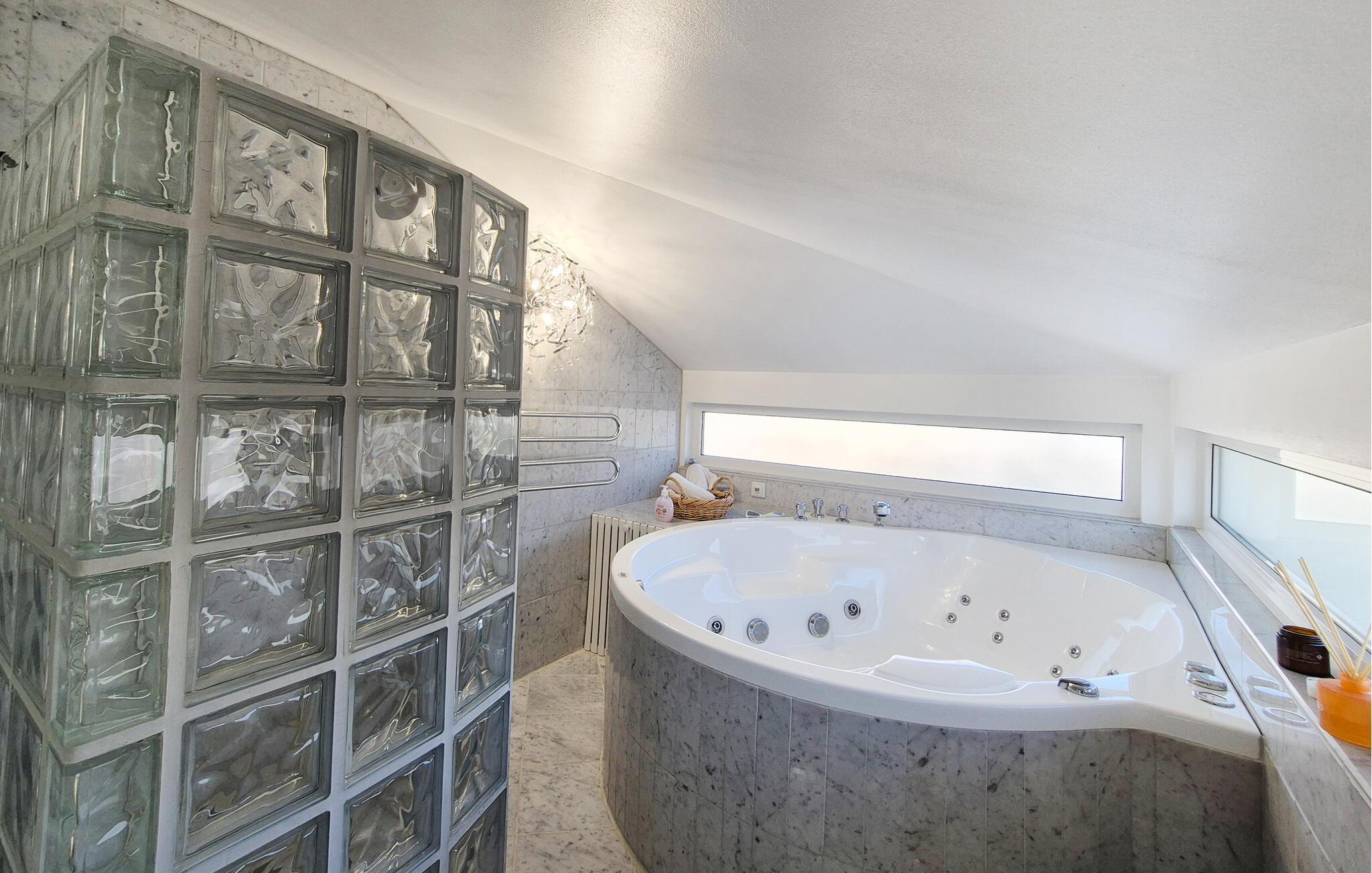 Dette rummelige og luksuriøst indrettede feriehus lægger op til harmoniske dage i sin varme atmosfære. Forbered jeres måltider i det rummelige køkken, og tag plads i den lyse spiseplads. Slap af på det stilfulde sofaområde, stream en film, lyt til brændeovnens knitren, mens I læser en god bog eller afslut dagen med et bad i spabadet.