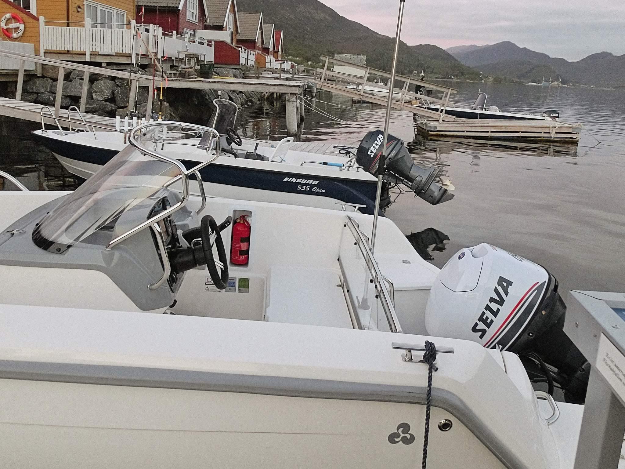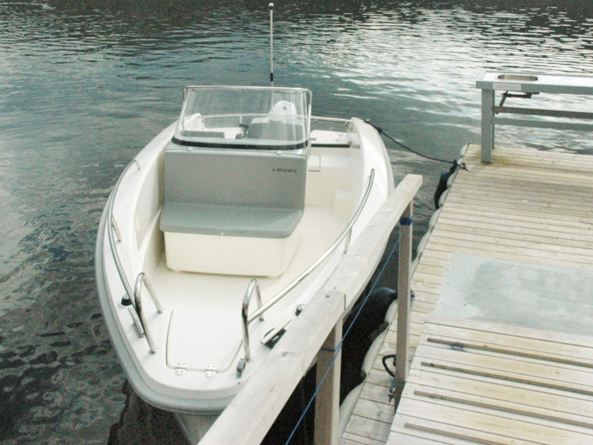 Ved flytebryggen rett foran huset er det følgende båt til leie: