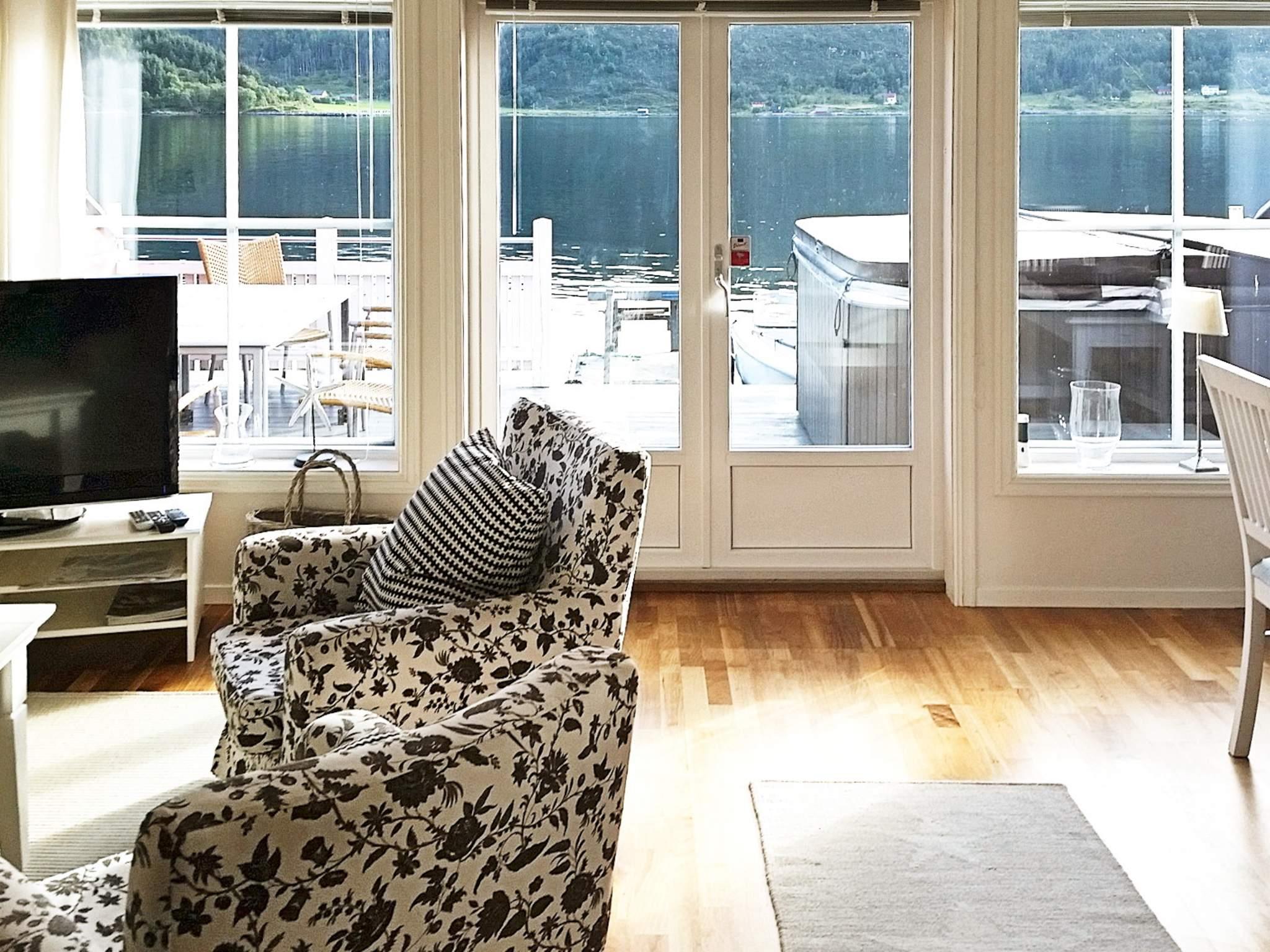 Dette feriehuset ligger flott til ved fjorden, med en romslig terrasse og panorama utsikt utover fjorden og det nydelige landskapet.