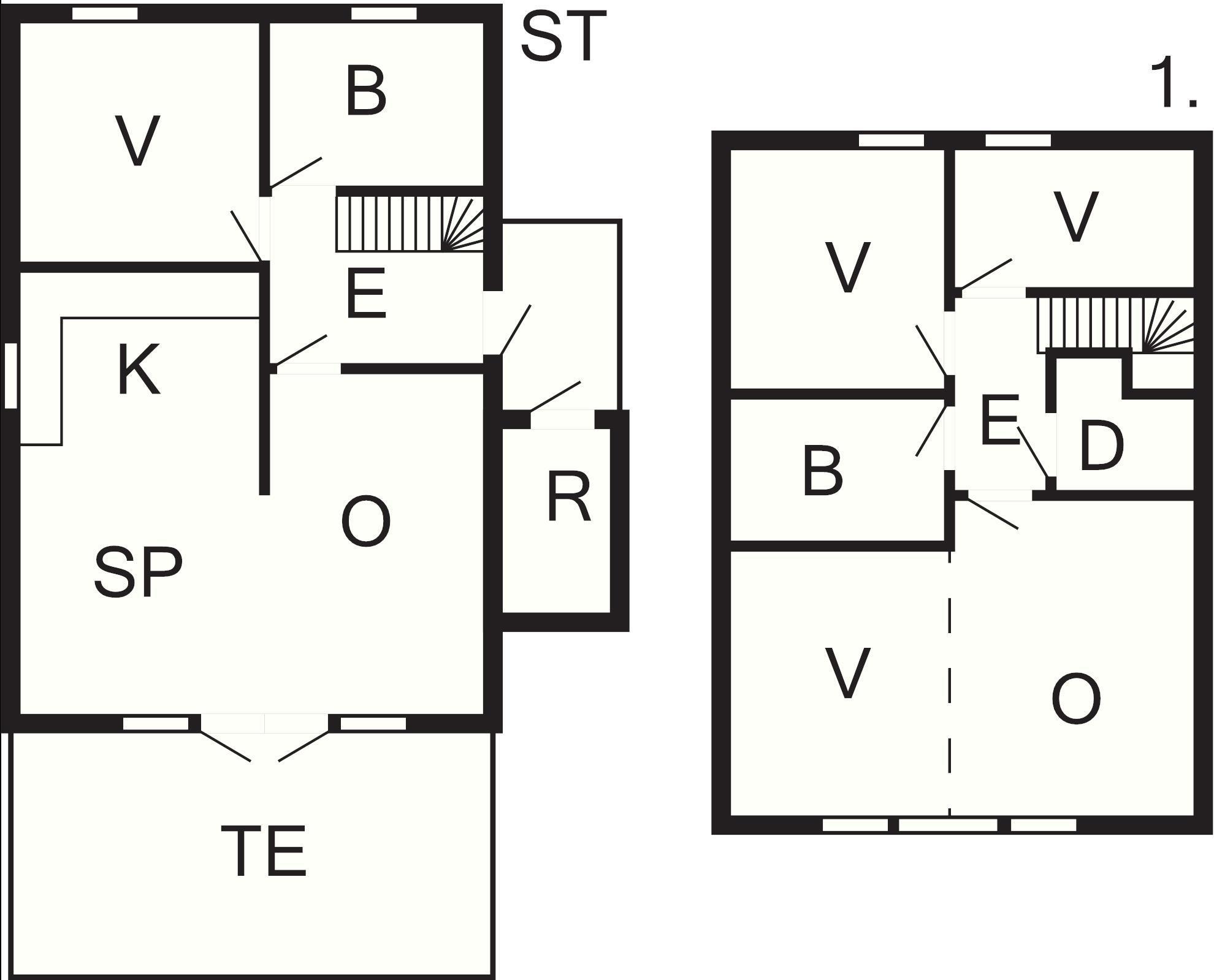 4 Soveværelser: (1DS)+(2S)+(2S)+(2S)