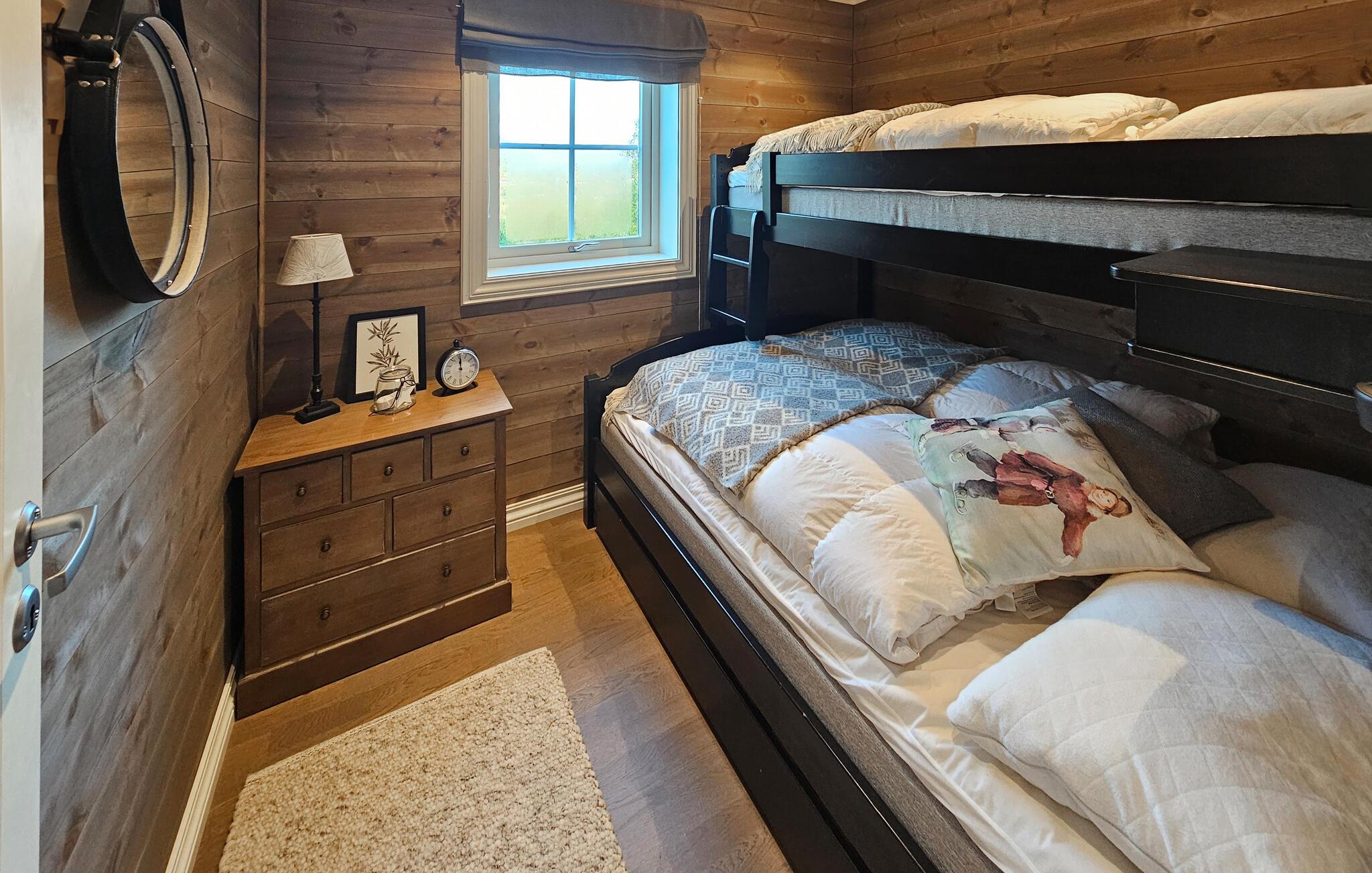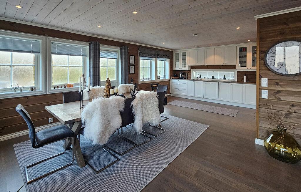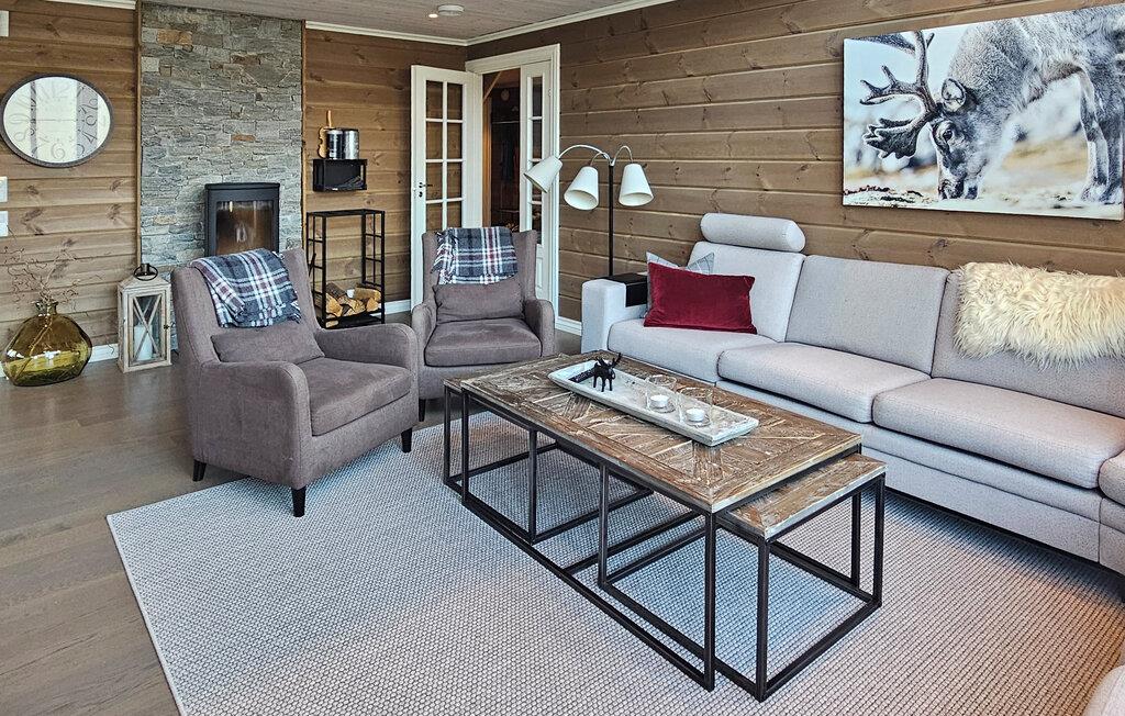 Med plads til en større gruppe ligger dette feriehus nær søen Eivindbuvatn, som lægger op til en afslappende ferie. Det stilfulde træhus med naturligt tag giver jer ikke kun moderne, komfortabel indkvartering, men også smuk udsigt over den omkringliggende natur. Kom ind og bliv mødt af den varme og indbydende atmosfære. Tilbered en lækker morgenmad til alle i det store køkken om morgenen. Stuen, der er udstyret med et komfortabelt sofaområde og en brændeovn, lægger op til afslappende aftener med et glas vin eller en god bog. Find jer godt til rette og nyd den fred og ro, som dette hus tilbyder. Feriehuset byder også på et separat sofaområde ovenpå, ideelt til filmaftener eller socialt samvær. Tilbring hyggelige timer her med familien og nyd panoramaudsigten over det smukke landskab gennem de store vinduesfronter.