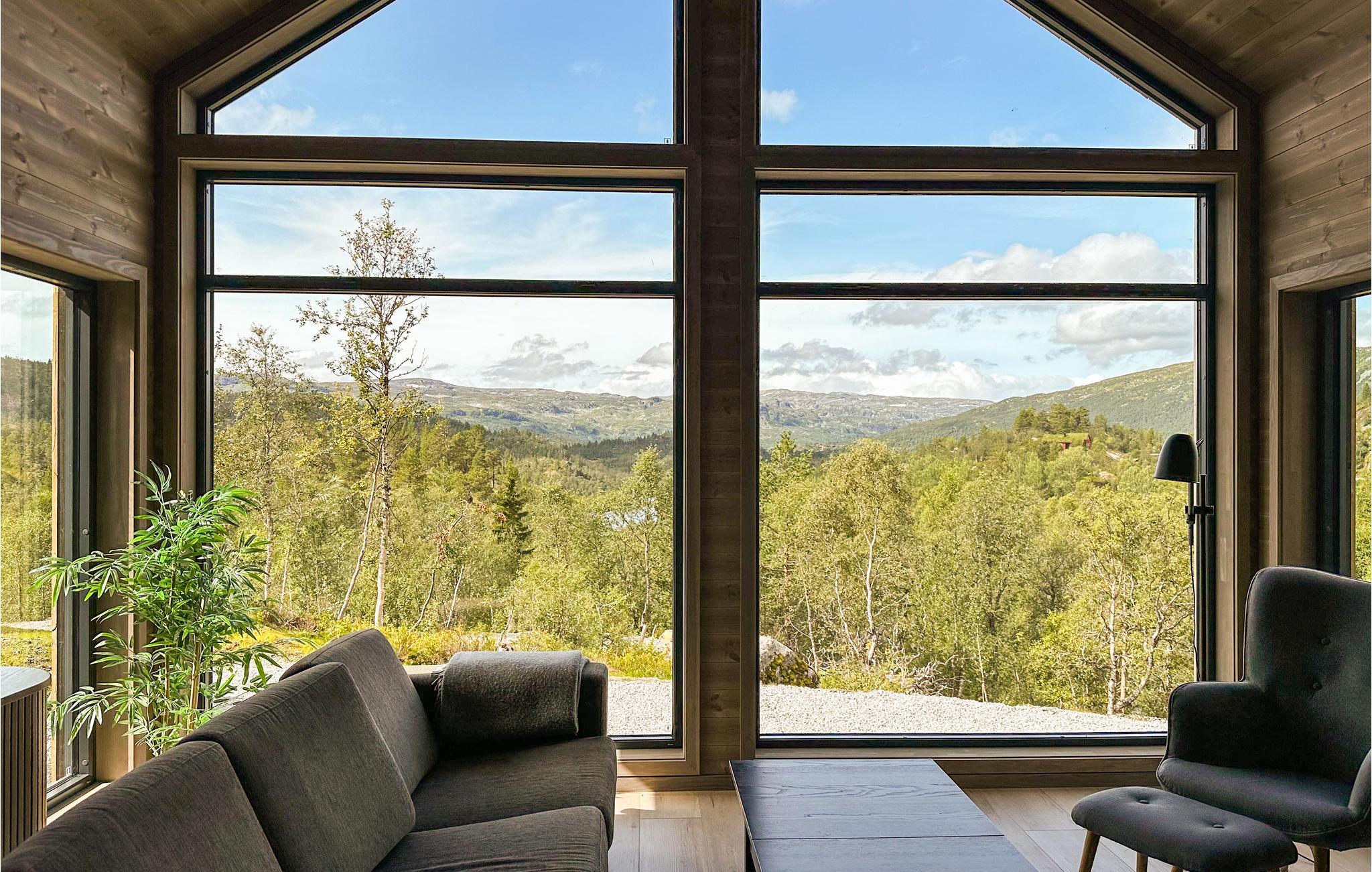 Glæd jer til dette rummelige og moderne feriehus med mange faciliteter ved Vågslivatnet.