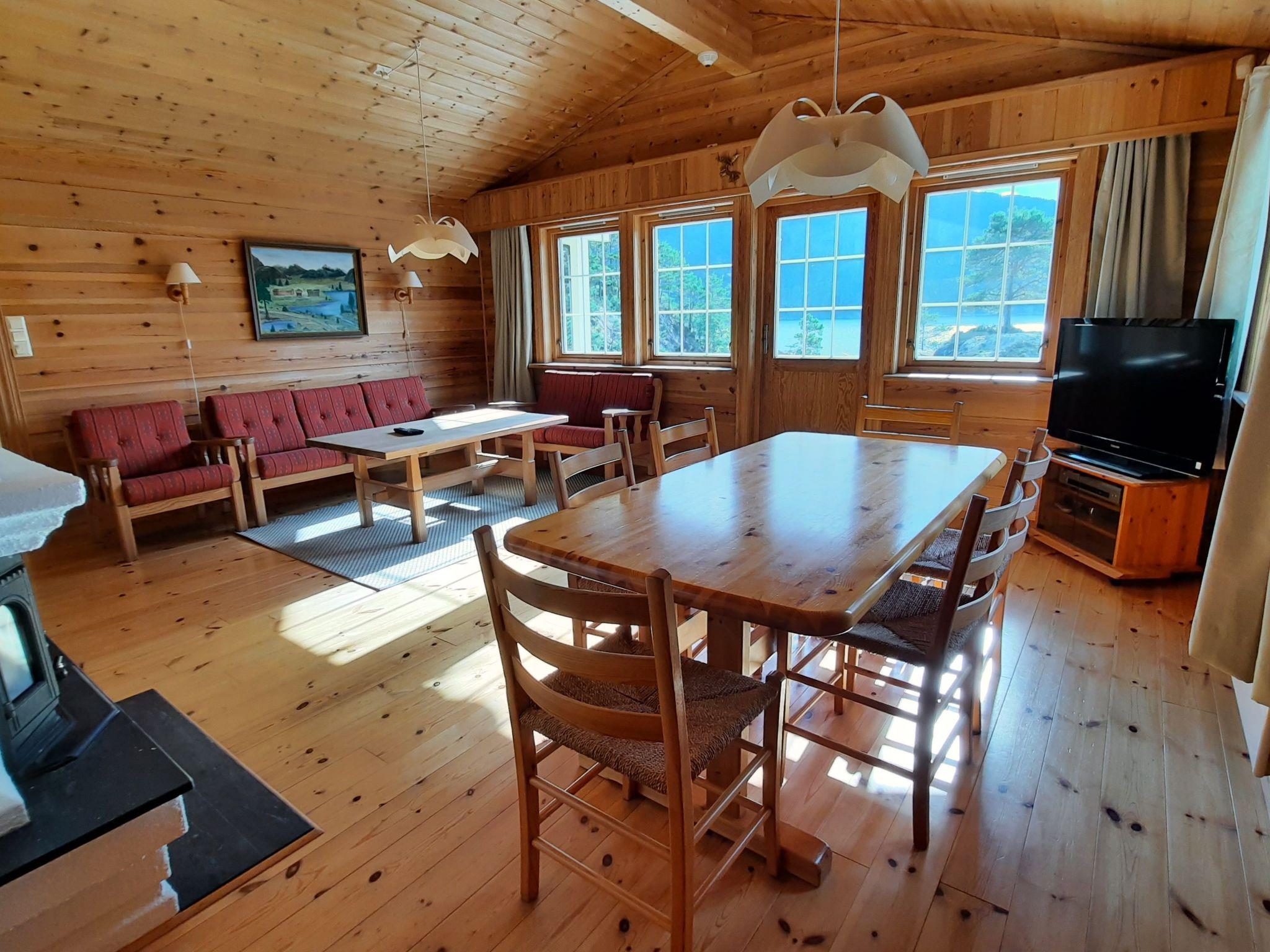 Welcome to our charming, classic Norwegian cabin – the perfect place for a relaxing holiday in beautiful surroundings. Here you can enjoy the tranquility of nature and a variety of outdoor activities. The bright rooms with wood paneling create a cozy and relaxed atmosphere. From the dining table, you can admire the breathtaking view of the forest and fjord. In the evenings, you can relax by the fireplace and listen to the soothing crackling of the flames.
