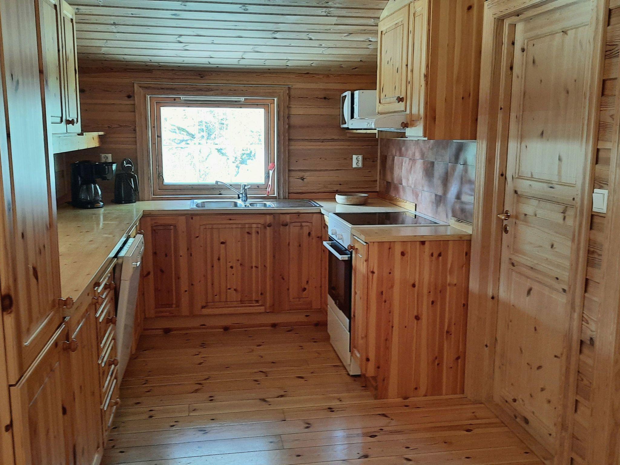 The cabin has three bedrooms that can accommodate up to six people, a spacious, open-plan living room with a kitchen, a bathroom, and a guest toilet.