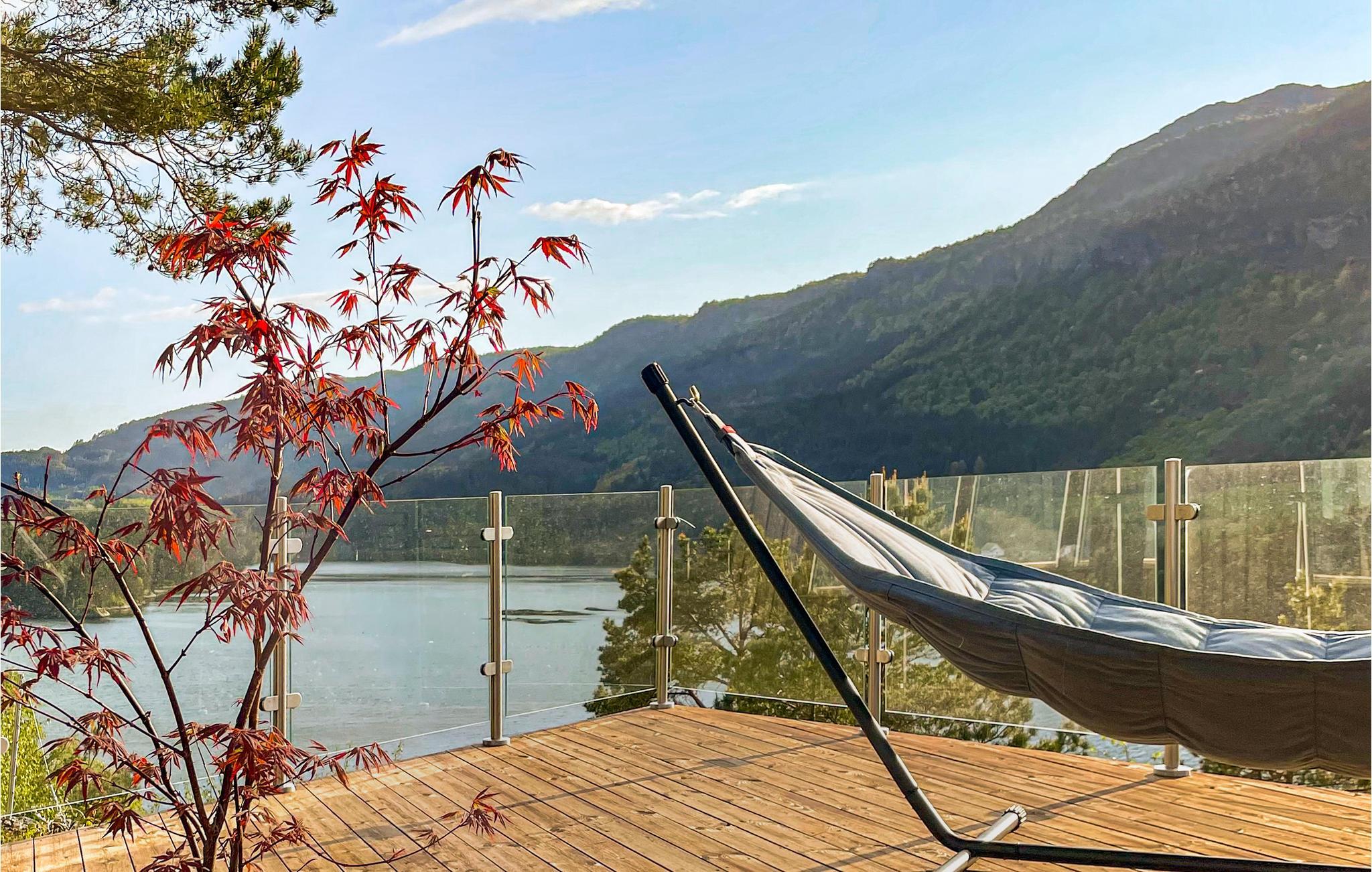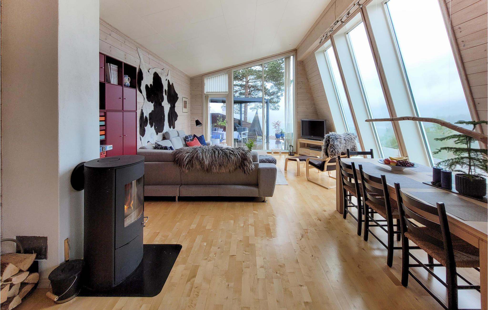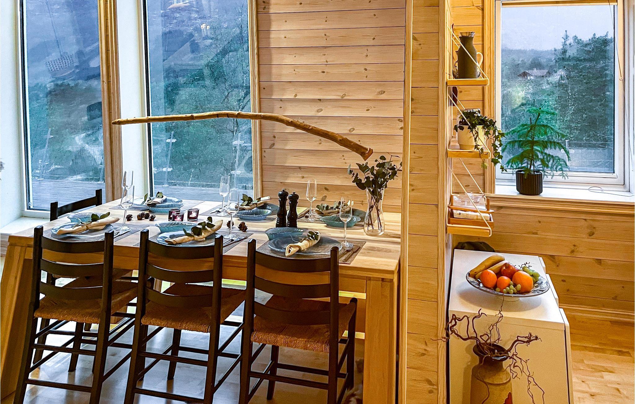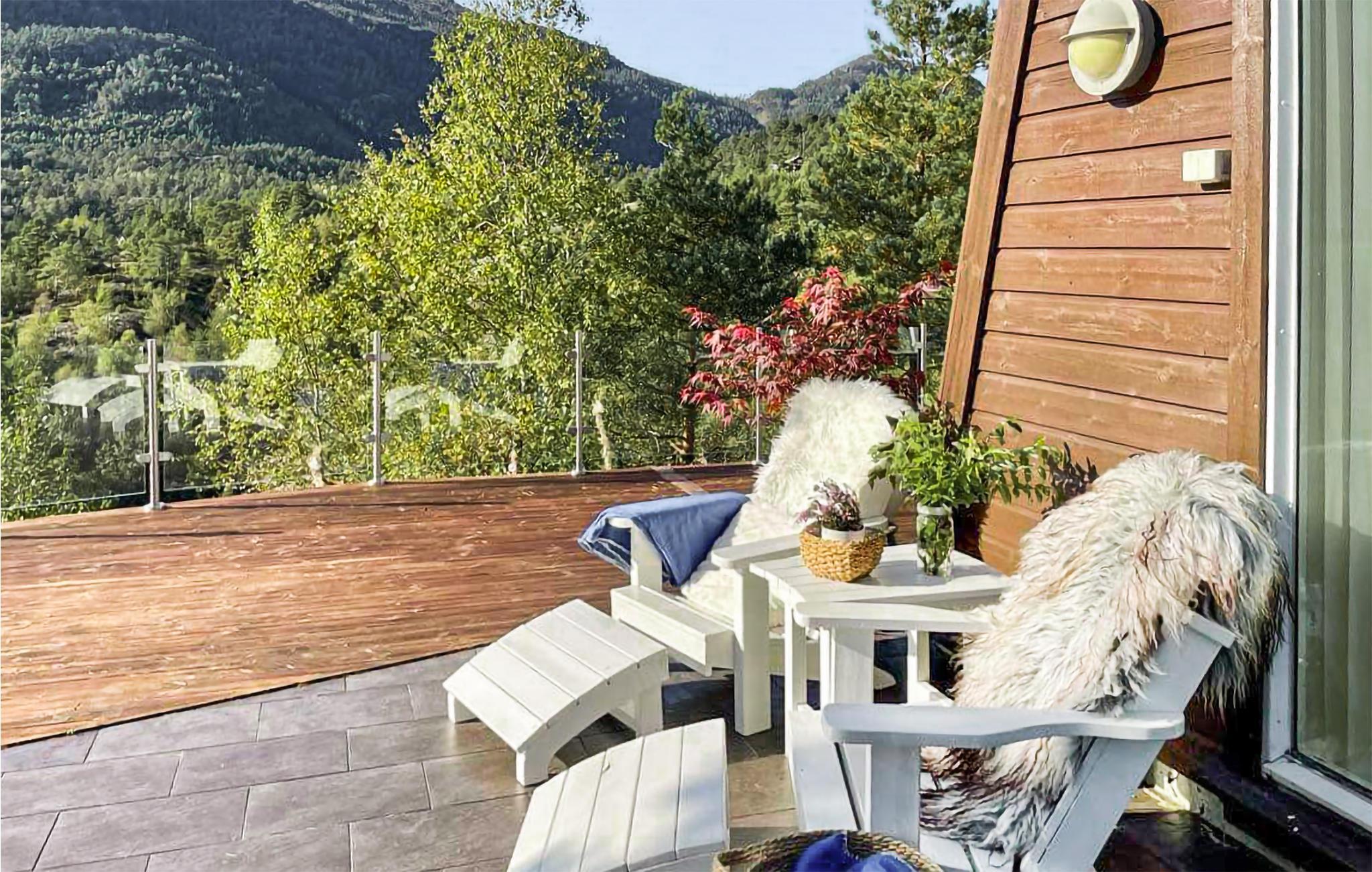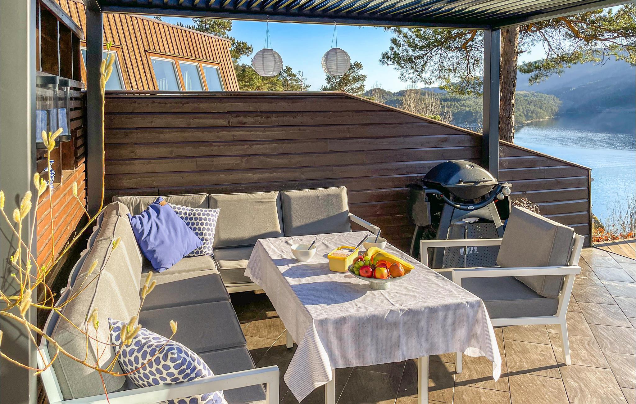 Tilbring kvalitetstid udendørs på den rummelige terrasse, måske med lækker mad fra grillen, og bliv fortryllet af den storslåede fjordudsigt over Vatlandsvågen.