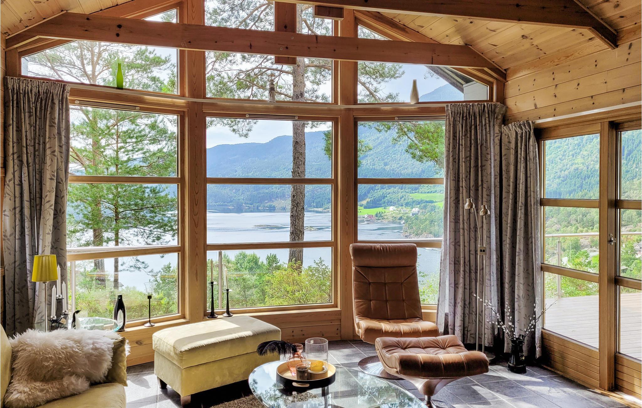 Der venter jer en fantastisk udsigt til Vatlandsvågen fra dette hyggelige feriehus.