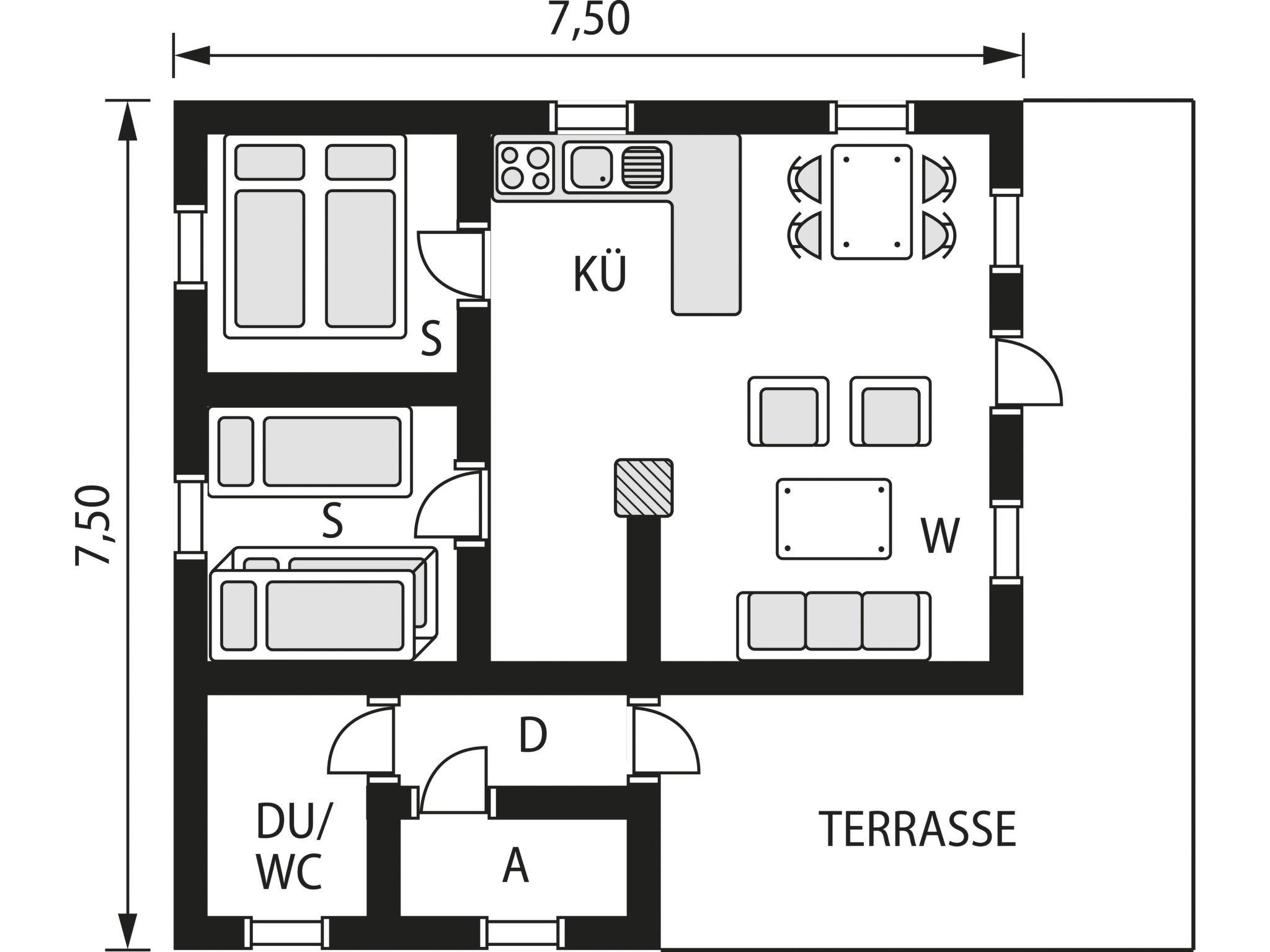 "Synnøve", 3-room house 50 m2. Practical furnishings: living/dining room with Scandinavian wood stove, dining table, satellite TV and international TV channels. Exit to the terrace. 1 room with 1 double bed (150 cm, length 200 cm). 1 room with 1 bed (90 cm, length 200 cm), 1 x 2 bunk beds (75 cm, length 200 cm). Open kitchen (4 hot plates, oven, dishwasher, toaster, kettle, microwave, freezer, electric coffee machine). Shower/WC. Electric heating. Terrace partly roofed. Terrace furniture, barbecue, box-room. Facilities: washing machine, baby cot. Internet (WiFi, free). Please note: maximum 2 pets/ dogs allowed. Smoke alarm, fire extinguisher. Freezer approx. 105 l. 924531169