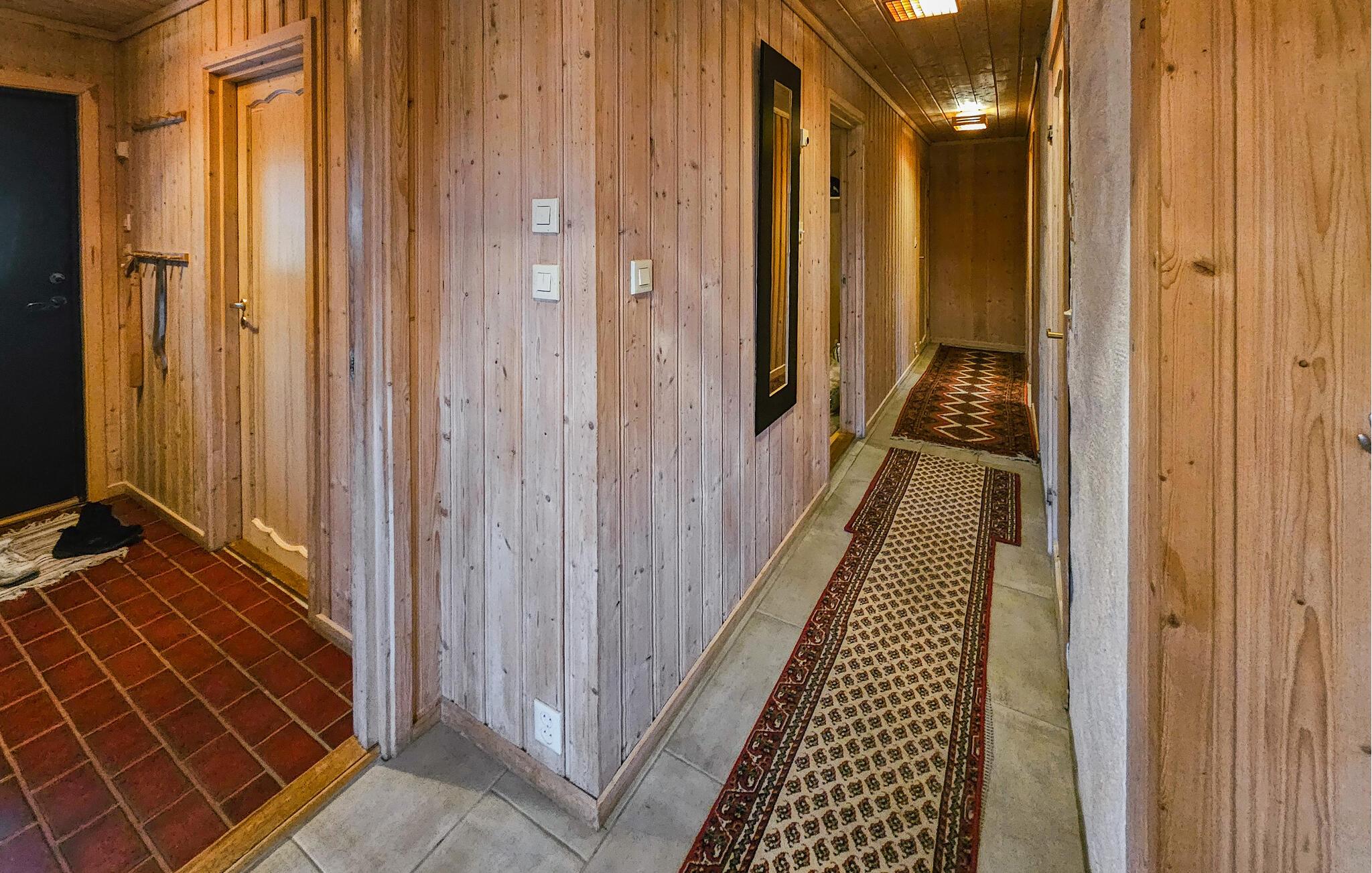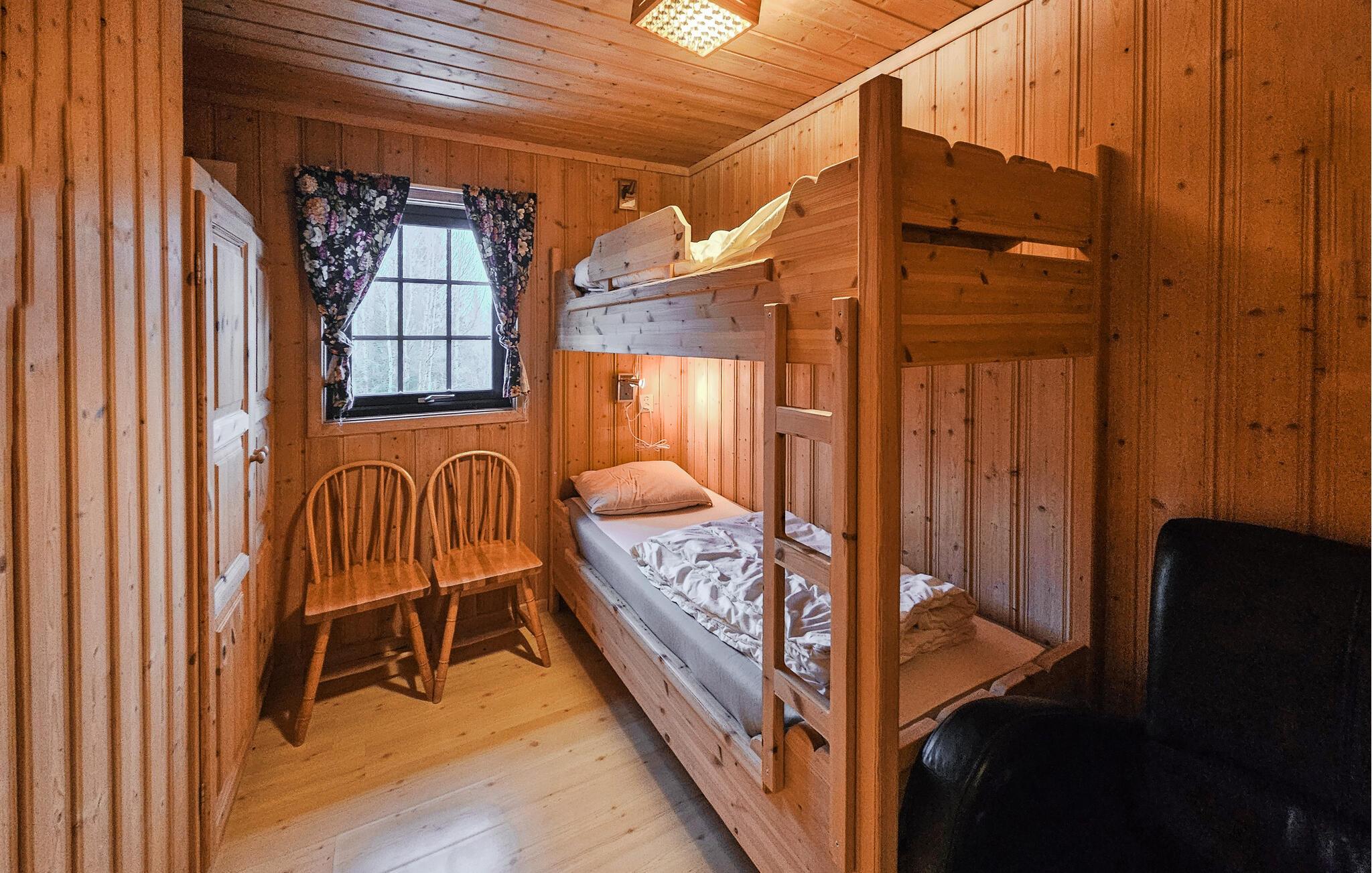 Med sine trævægge og bløde belysning udstråler denne hytte en hyggelig atmosfære, hvor I hurtigt vil føle jer godt tilpas. Her kan I læne jer tilbage efter en aktiv dag i naturen og nyd den behagelige varme fra pejsen. Den store sofa lægger op til at se en film sammen, spille kort eller blot nyde freden og roen. Med en varm drik og stearinlysets skær slutter dagen her på en virkelig behagelig måde.