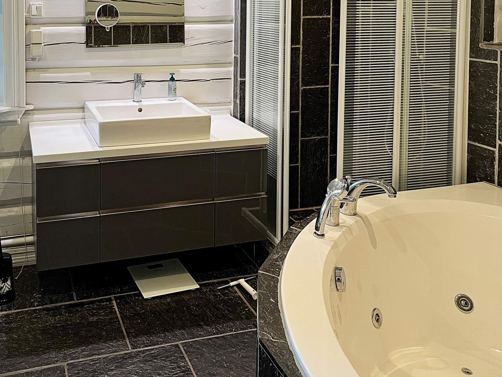 Stor tomt med god avstand til hyttenaboer. Hytta er oppført i tradisjonell norsk stil og har en romslig, overbygd veranda. Hytta har en koselig stue med både peis og vedovn og utgang til veranda. Kabel-tv og internett. Velutstyrt kjøkken. To bad, det ene med et deilig boblebad. Vaskemaskin og tørketrommel. Hytta har tre soverom, ett med dobbeltseng og to med køyesenger. Det er en stor veranda i tillegg til gressplen, huskestativ på tomta og en bålpanne for grilling. Håndkle og sengetøy er inkludert i leien.