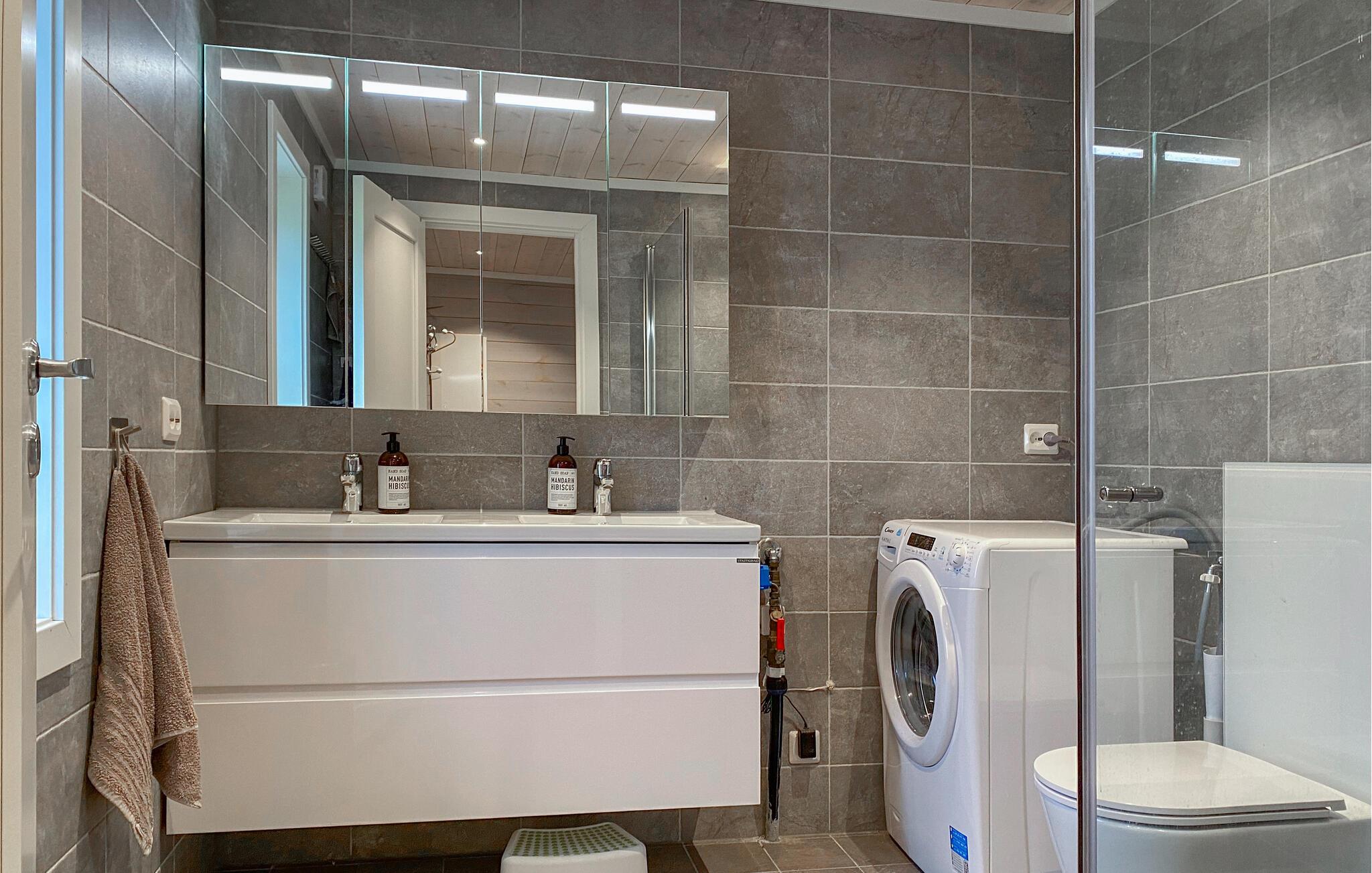 I dette stilfuldt indrettede feriehus i Hildre kan I opleve ren afslapning. De store panoramavinduer lukker masser af lys ind og giver jer en betagende udsigt over vandet. Nyd komforten i den moderne indretning, og tilbring hyggelige stunder i det åbne opholdsområde. På den rummelige terrasse kan I nyde måltider udendørs og mærke den friske havluft – et ideelt sted at finde ro og nyde naturen fuldt ud.