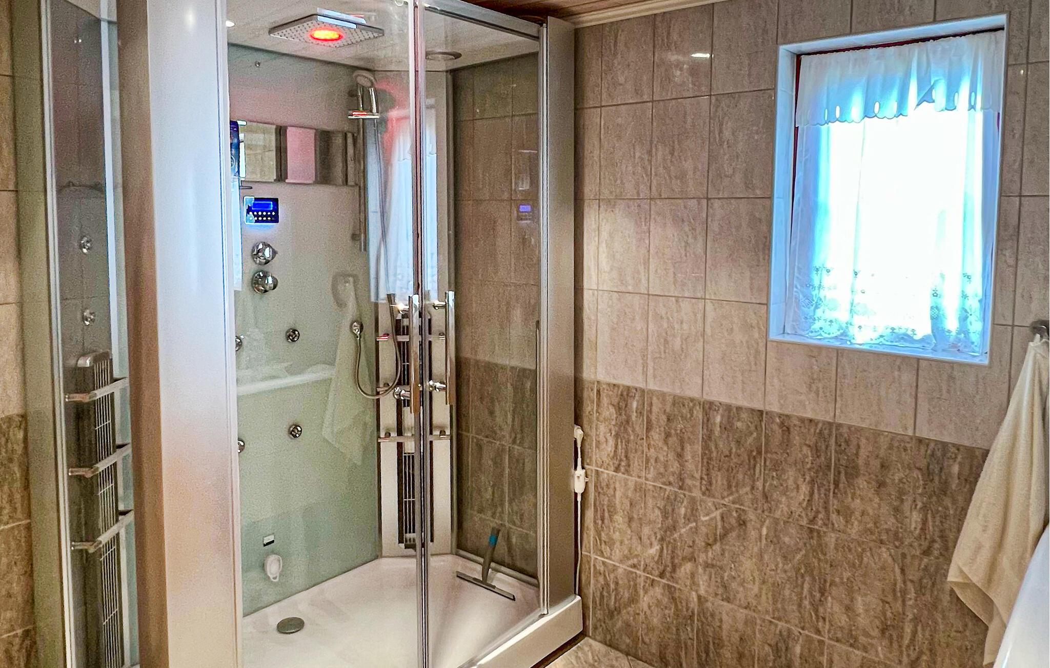Dette hus imponerer ikke kun med sin afsondrede og solrige beliggenhed, men også med sine komfortable møbler. Store vinduer oversvømmer interiøret med naturligt lys, så I kan nyde en smuk udsigt over de omkringliggende grønne områder fra sofaens komfort. Slå jer ned med en kop kaffe, fordyb jer i jeres ferielæsning eller tilbered lækre måltider sammen i køkkenet.
