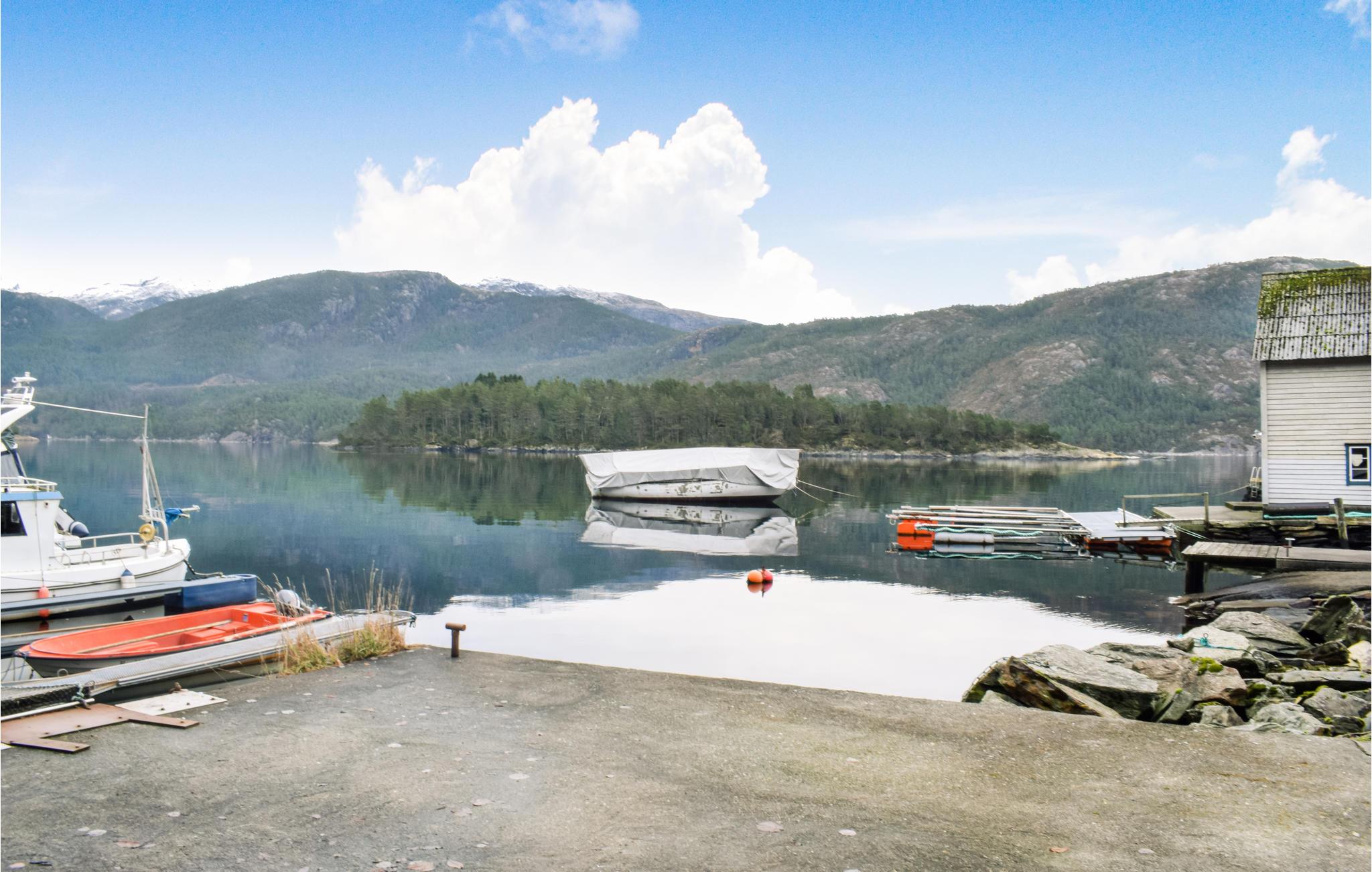 Fra huset er det 200 meter til vandet og fjorden, hvor I finder flere gode svømmepladser. En større legeplads kan nås til fods. Et smukt vandreområde begynder lige på ejendommen. En kort køretur fører jer til foden af ??Fusa-bjergene, hvor godt afmærkede vandrestier fører ind i bjergene. Bådsæsonen løber fra 1. april til 30. oktober, og fantastiske Bergen ligger en times kørsel fra huset.