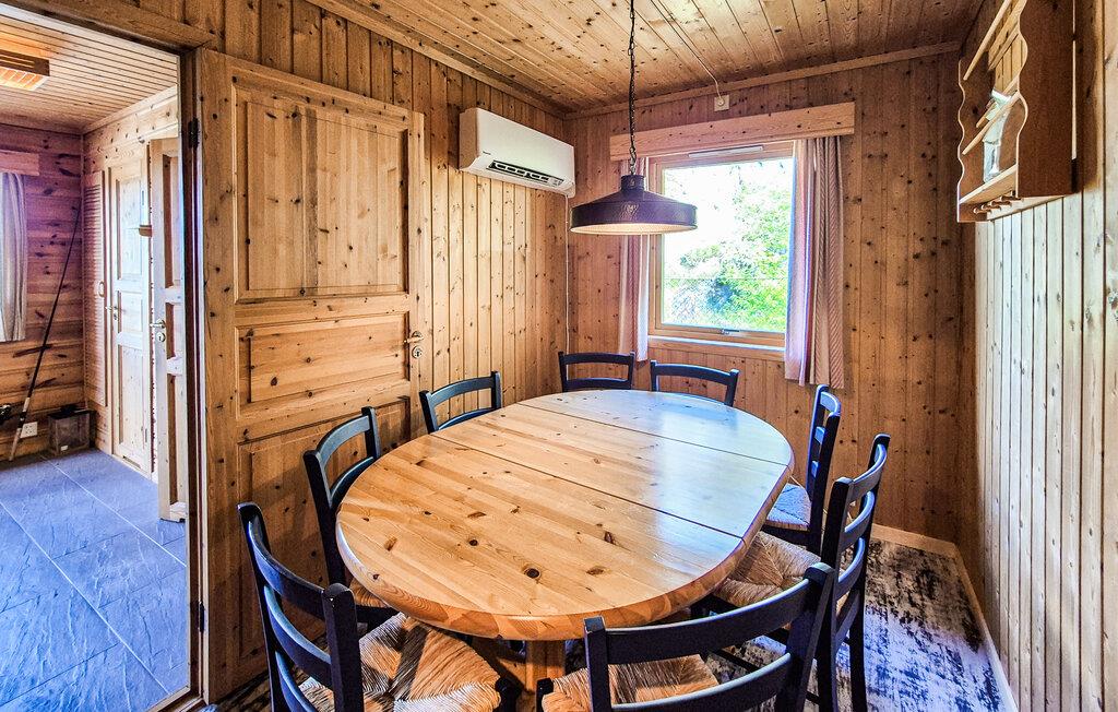 Idyllisk beliggende med udsigt over Radfjorden byder dette indbydende hus jer velkommen til et afslappende ophold omgivet af smuk natur. Værelserne, med deres rustikke charme takket være det store udvalg af træ, tilbyder en hyggelig opholdsoplevelse. Nyd den betagende udsigt, mens I slapper af i sofaen, og glæd jer til hyggelige aftener ved den knitrende brændeovn.