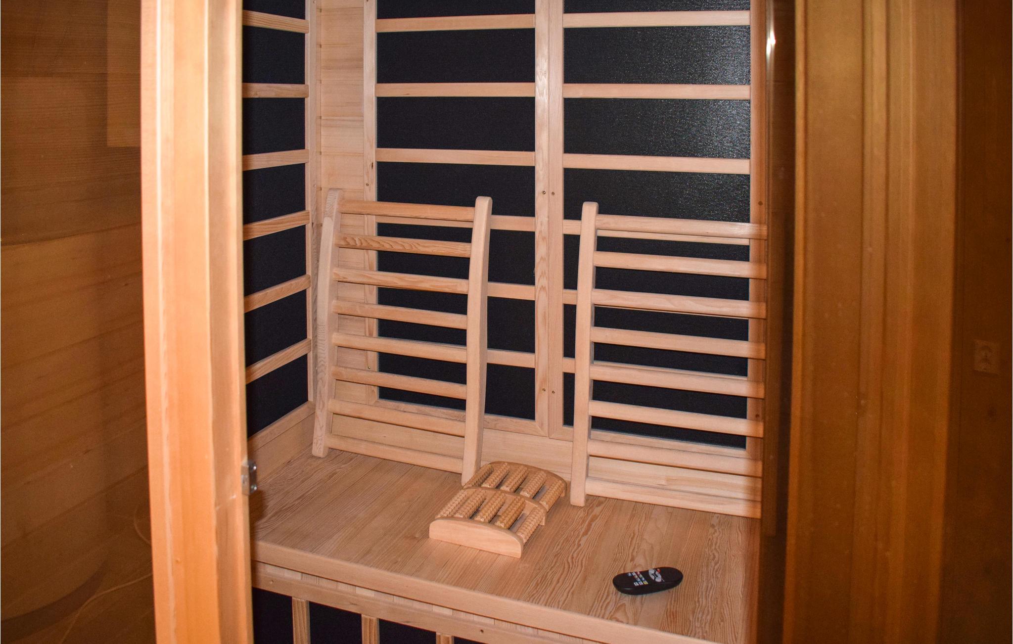 Dette skønne feriehus byder hele familien eller vennepar velkommen på alle tider af året. Find jer til rette og nyd den farverige og velkendte indretning og dekoration. Find jer godt til rette på sofaen ved en pejs eller slap af i den infrarøde sauna. Terrassen med bålplads og picnicbord er også optimal til at nyde og afslutte de lange sommeraftener.
