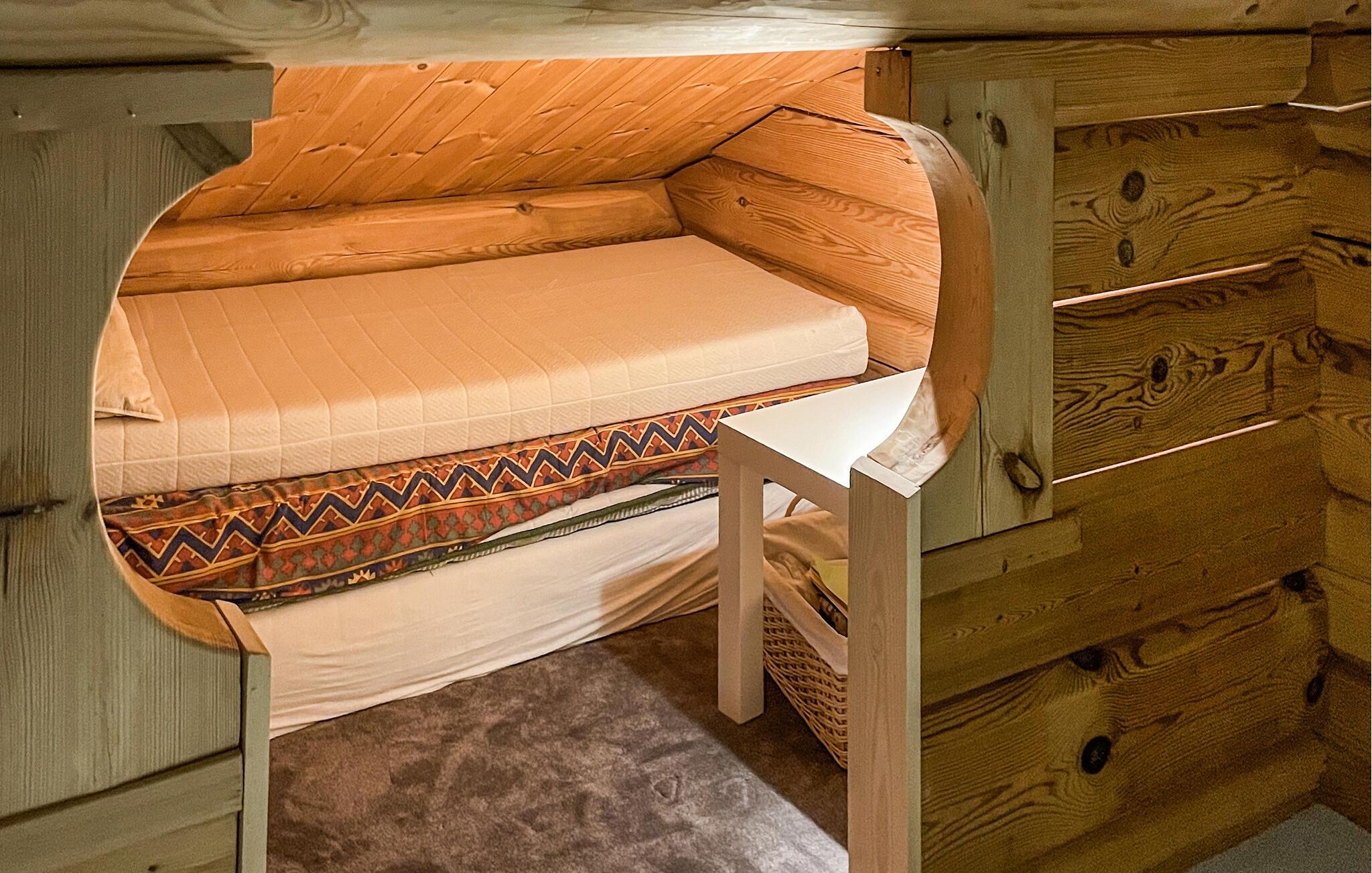 Dette karakterfulde hus kombinerer bekvemmelighed og komfort på en behagelig måde. Rustikke træbjælker, naturstensfinish og en murstenspejs skaber en varm og hyggelig atmosfære. Fordyb jer i en god bog eller nyd blot den storslåede udsigt over det spektakulære bjerglandskab.