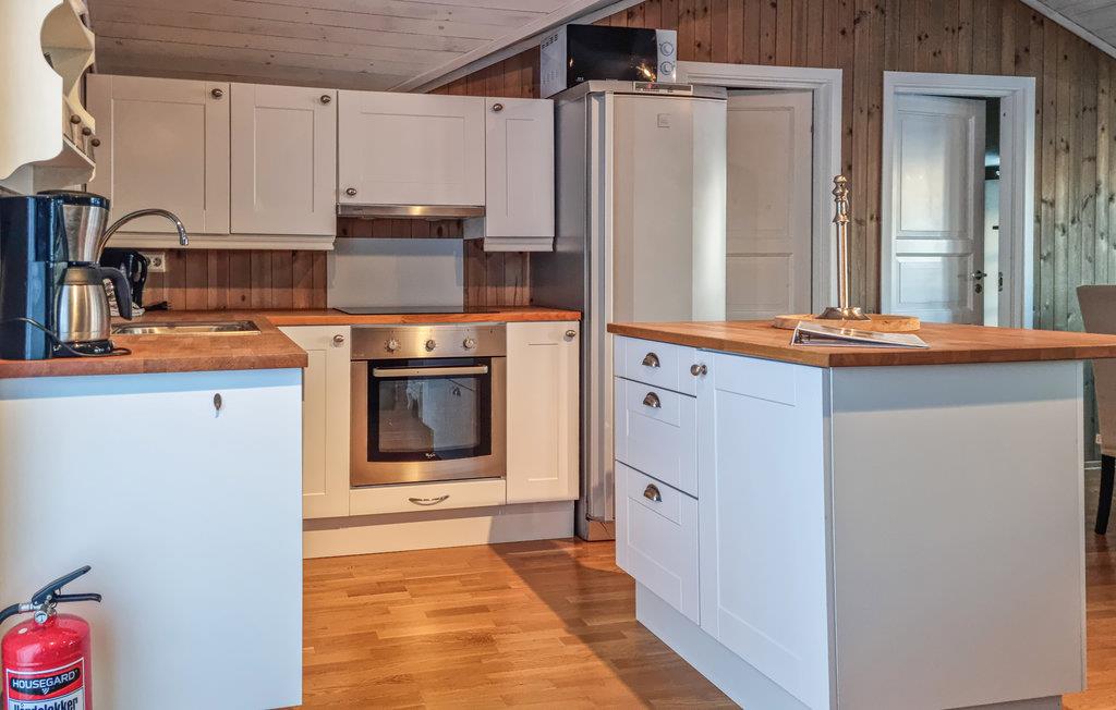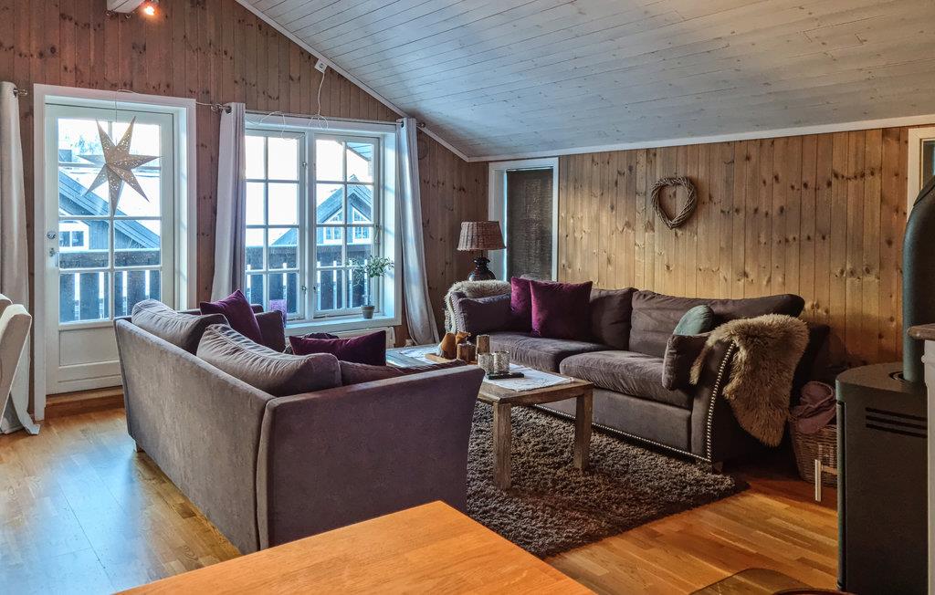 Mellem skisport, vandreture og udflugter tilbyder feriehuset dejlige rum og behagelige møbler til afslapning. Trævægge- og lofter skaber en hyggelig atmosfære. Om aftenen kan I tænde op i brændeovnen og se fjernsyn, mens flammerne knitrer. Til huset hører en terrasse, hvor I kan sidde og drikke en varm kop kaffe, mens I nyder udsigten til bjerge og fjelde. I har også en grill til rådighed, hvis I fx ønsker at grille friskfanget fisk.