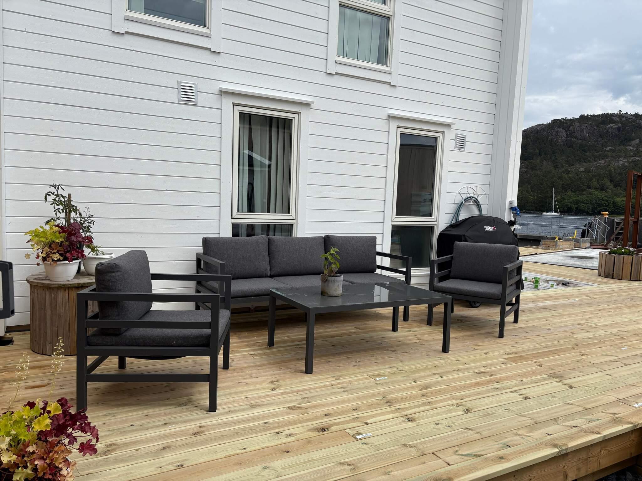 Og: terrasse, el-varme, havegrill, naturgrund, blandet møblering, panoramaudsigt over vand, ikke-ryger hus, Max. 15 kg fisk/pers, Fiskehus