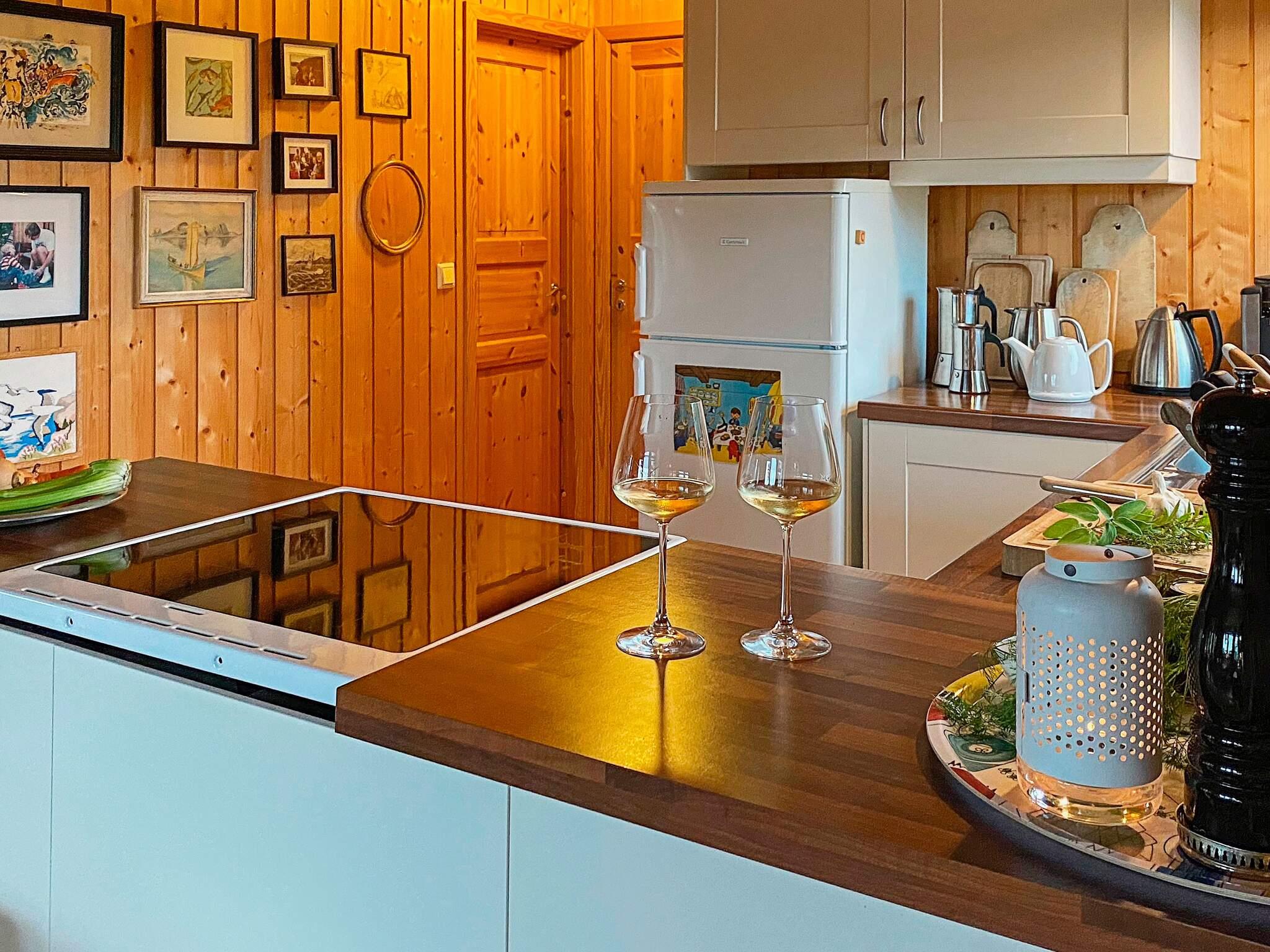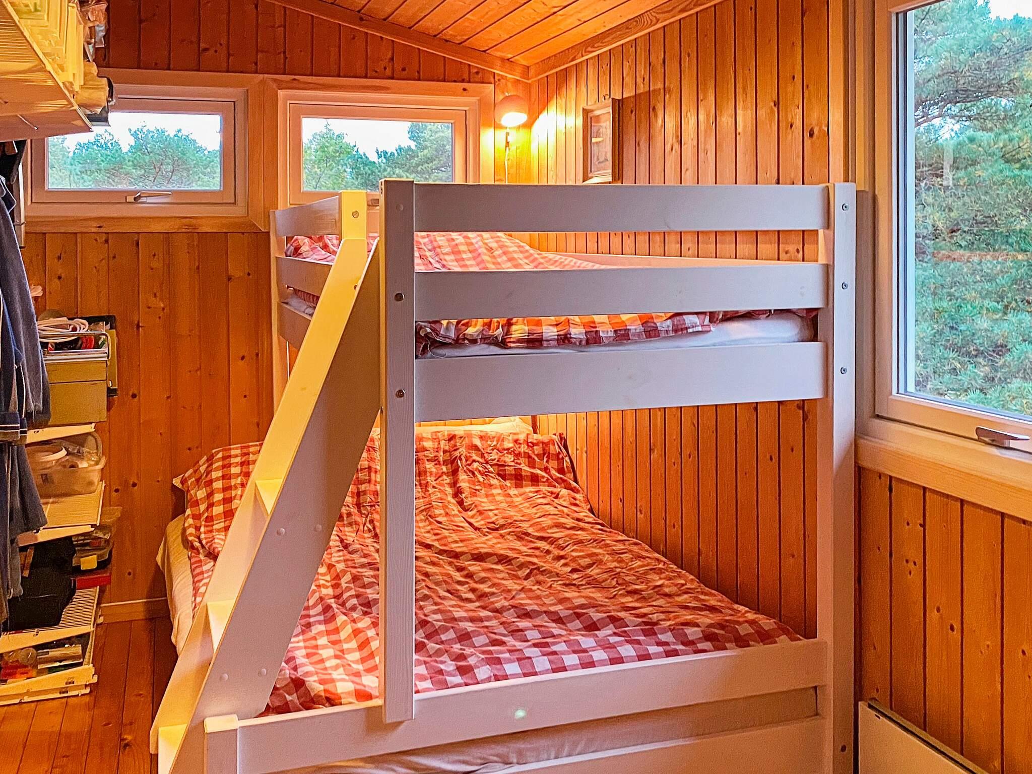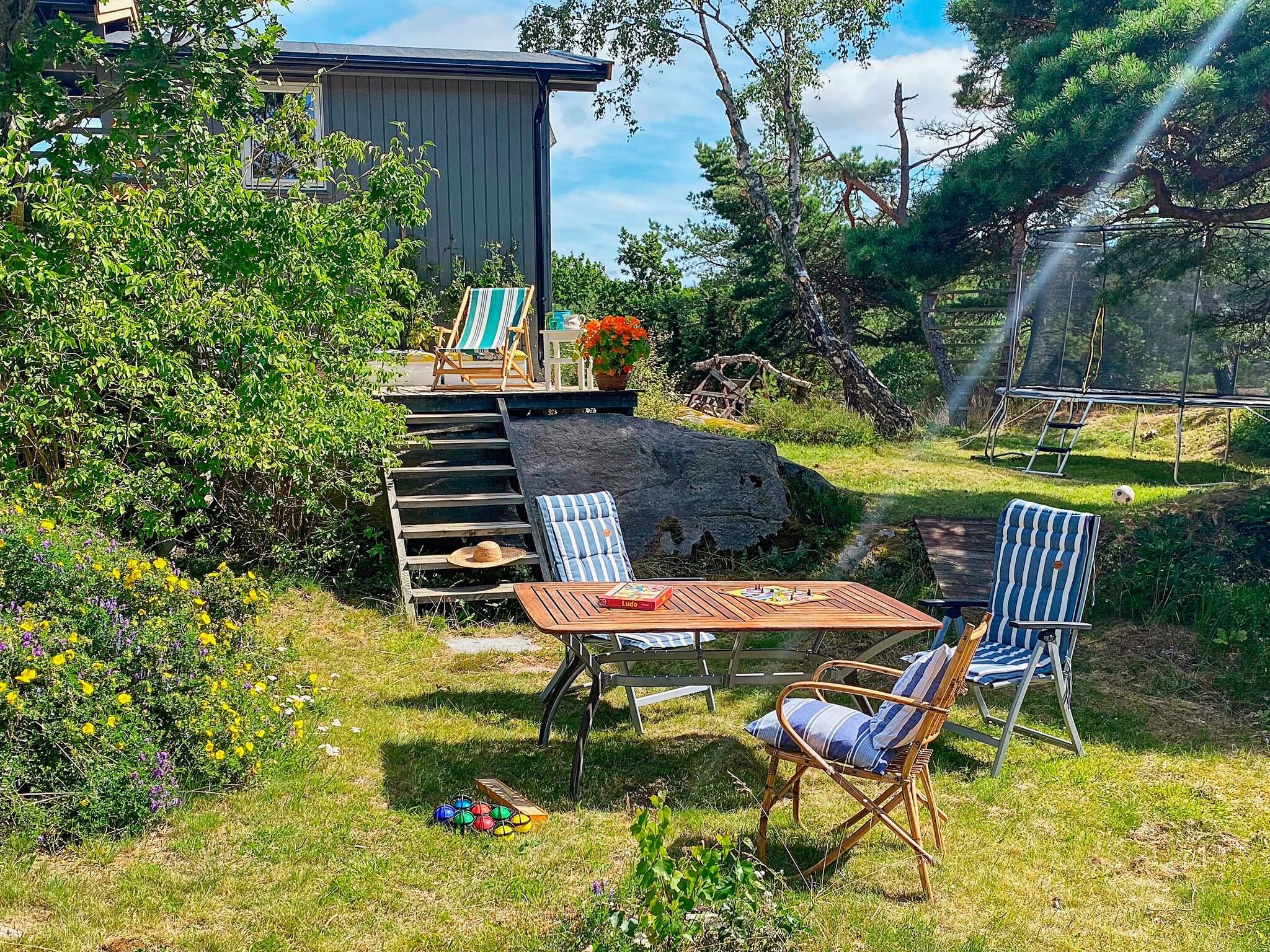Ferieboligen har 2 terrasser og anneks med masse uteplass der du kan følge solen hele dagen til sent på kveld. Mulighet for aktiviteter som badminton eller dart, eller dere kan grille og kose dere på terrassen. Stuen/kjøkkenet er midtpunktet i hytta hvor dere kan slappe av i sofaen eller godstolen foran vedovnen. Store vinduer gir godt lys. Annekset har 2 separate rom, et med dobbeltseng og et med familiekøyeseng til 3 personer (120cm nede). Feriehytta er velegnet for to familier med mange barn. Sengeklær og håndklær må tas med.