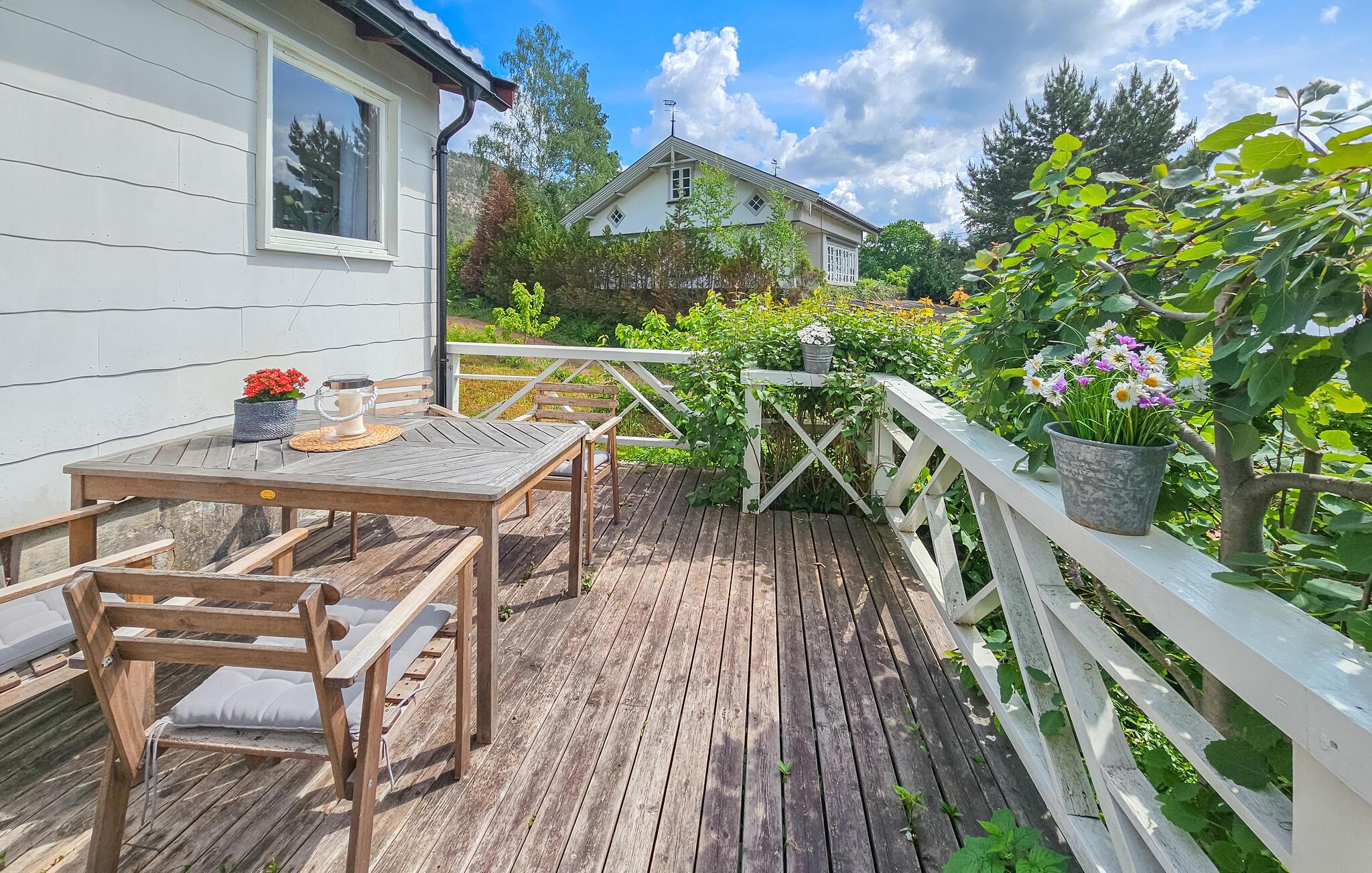 Den store terrasse er et dejligt sted at nyde solnedgangen over Drammensfjorden. Huset har fantastisk ro. Snup et brusebad under udendørsbruseren efter jeres strandbesøg.
