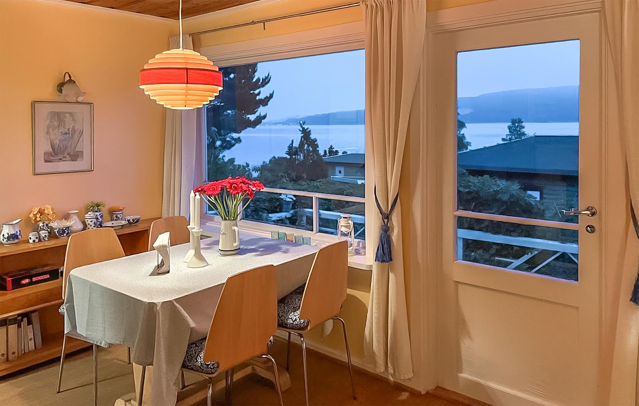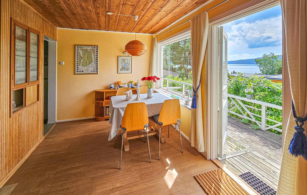 Nyd ferien i dette charmerende, fine træhus med fjordudsigt.