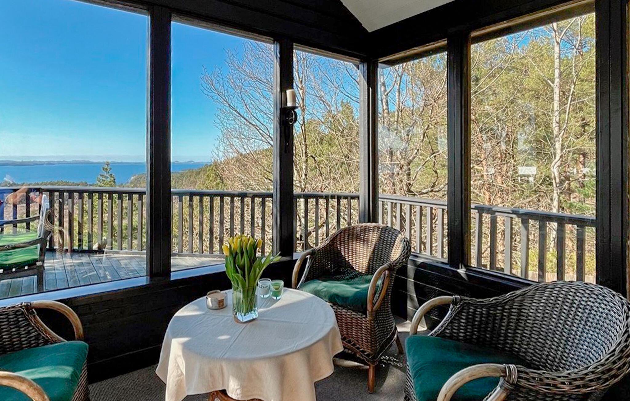 Afhængigt af vejret kan I kigge ud over fjorden fra det glasindkapslede område eller på den åbne terrasse og se frem til uforglemmelige solnedgange.